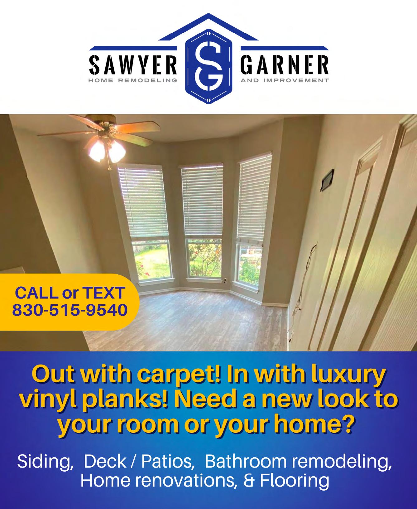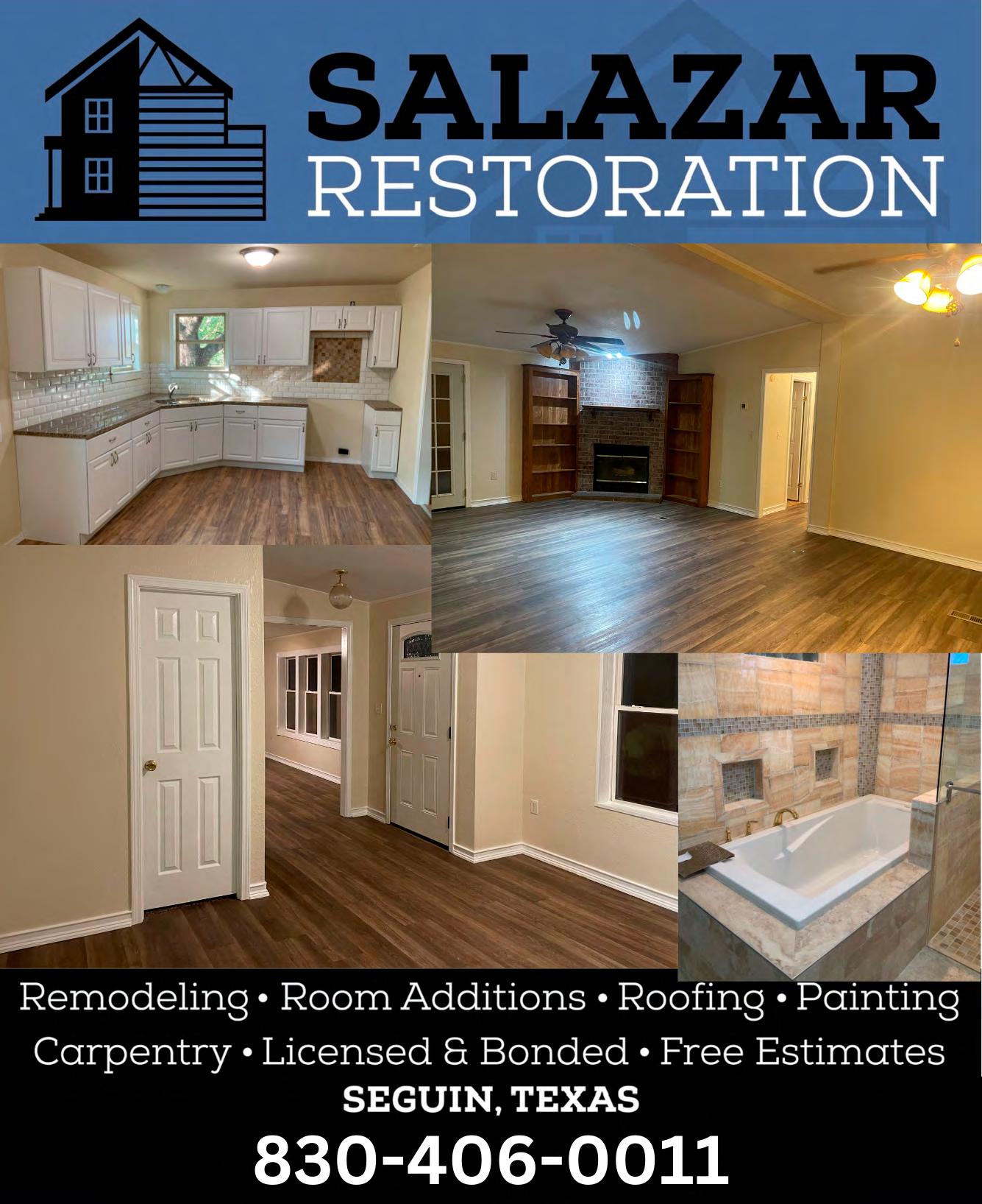ML#11807 101 Ermel, Street Seguin, Texas 78155 Commercial and Residential Plumbing SEGUIN: 830-379-8624 NEW BRAUNFELS: 830-629-1757 www.a1tricountyplumbing.com a1trico@yahoo.com SAN MARCOS: 512-353-8656 TOLL FREE: 1-877-WET-LEAK FOR MORE THAN 35 YEARS! A-1 Tri County Plumbing, Inc. 24/7, 365 DAYS A YEAR Offering: High Pressure Jetting, Non-Invasive Leak Detection, Stoppages, Water Heaters, Backflow Preventer Services, Slab Leaks, Pipe Winterizing, RePipes, Hard Water Solutions, Sewer Lines, Pre-Paid Service Agreements, Plumbing Emergencies and more! l h l d l T h e B l o o m i n ' C o t t a g e Plants & Flowers Specialty Pots Treasures Metal Artwork Iced Local Tea Custom Bouquets Bloomers Landscap ng 785-556-1826 | 1109 N. Austin Street Space available to host small group gatherings Events on Thursday nights! for details visit facebook com/thebloomincottage Family Owned & Operated! 830-303-7670 l gcfloors.com 1022 N. King St. Seguin, TX Leave your family FLOORED! your FLOORED!