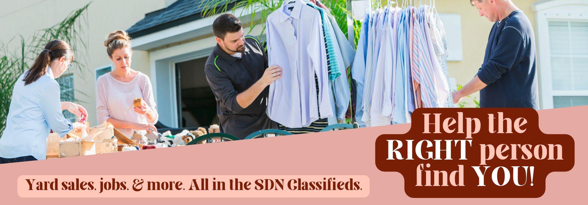 MULTI-FAMILY YARD SALE: 1025 E. Cedar Street - Saturday, March 15, 8am to 2pm. Plants, furniture, high-end clothing, purses, shoes, Consuela, plus size M/W, household items, books much more!!