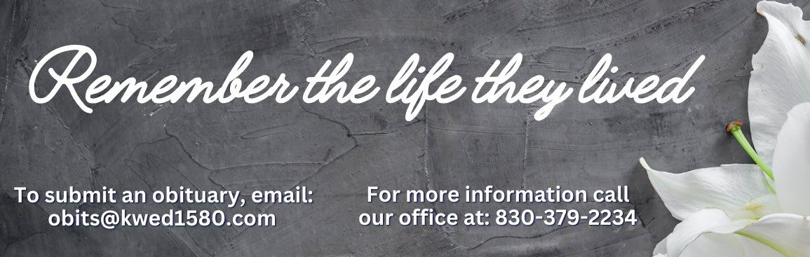 Memorial contributions may be made to First Methodist Church Seguin, 710 N. Austin, Seguin, Texas, 78155, or to the charity of one’s choice.