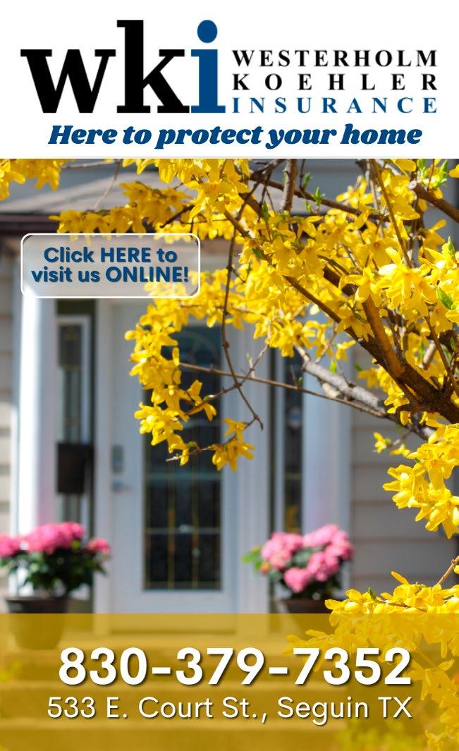 The Seguin Faith Lutheran Church will have its Seguin River 5k Run/Walk at 8:30 a.m. Saturday, April 20 at the Seguin Dance Pavilion, located at 950 S. Austin Str. in Seguin. For event details visit www.athleteguild. com/event/seguin-tx/2024-seguin-5k-river-runwalk. For questions, contact Cody Goetz at SeguinRiverRun@ gmail.com. Proceeds benefit the South Texas Pregnancy Care Center.