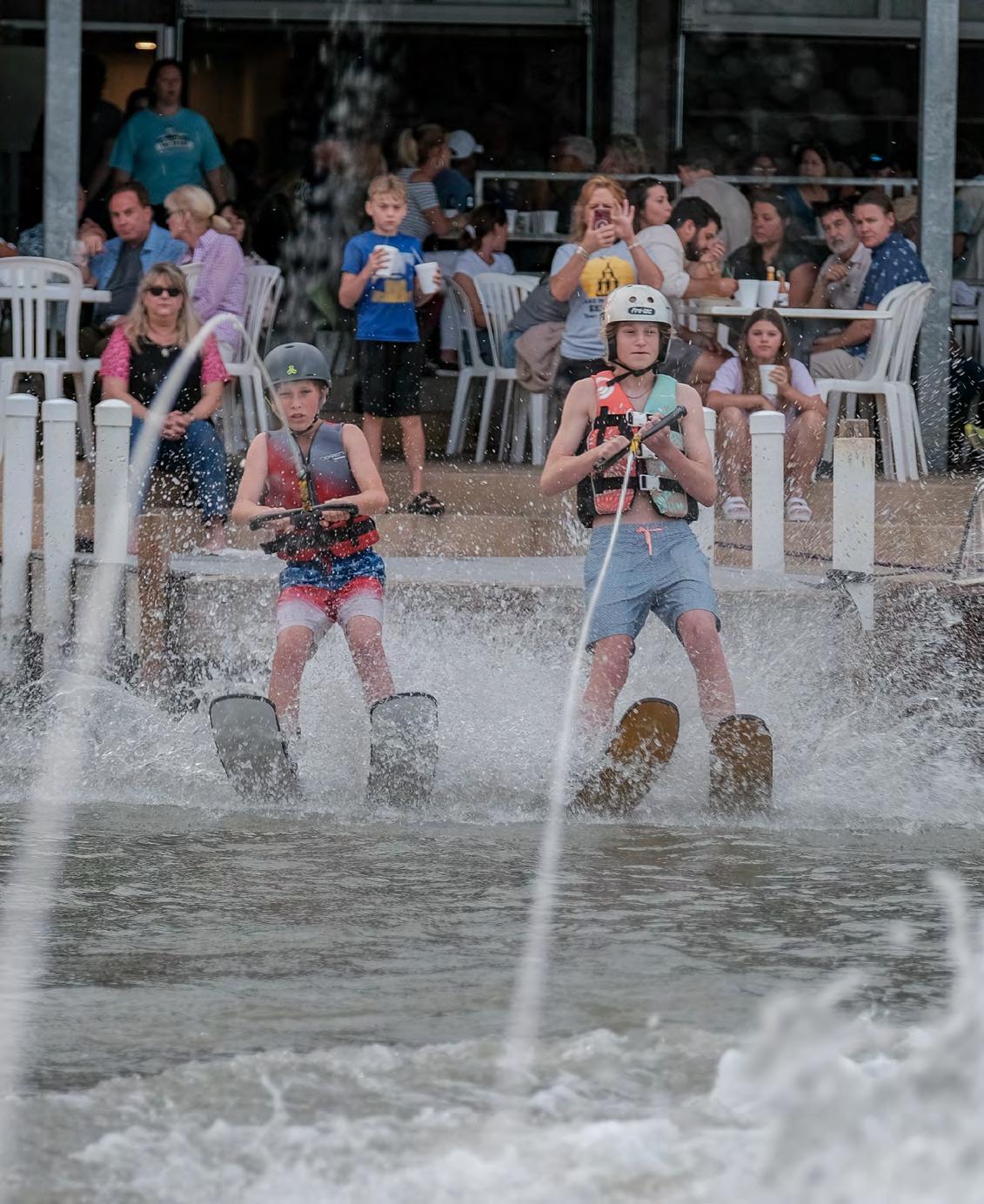 The Ski Bees show included big air jumps, twists and spins on swivel skis and more before rounding it all out with a three tiered pyramid that buzzed around the lake as the sun went down.