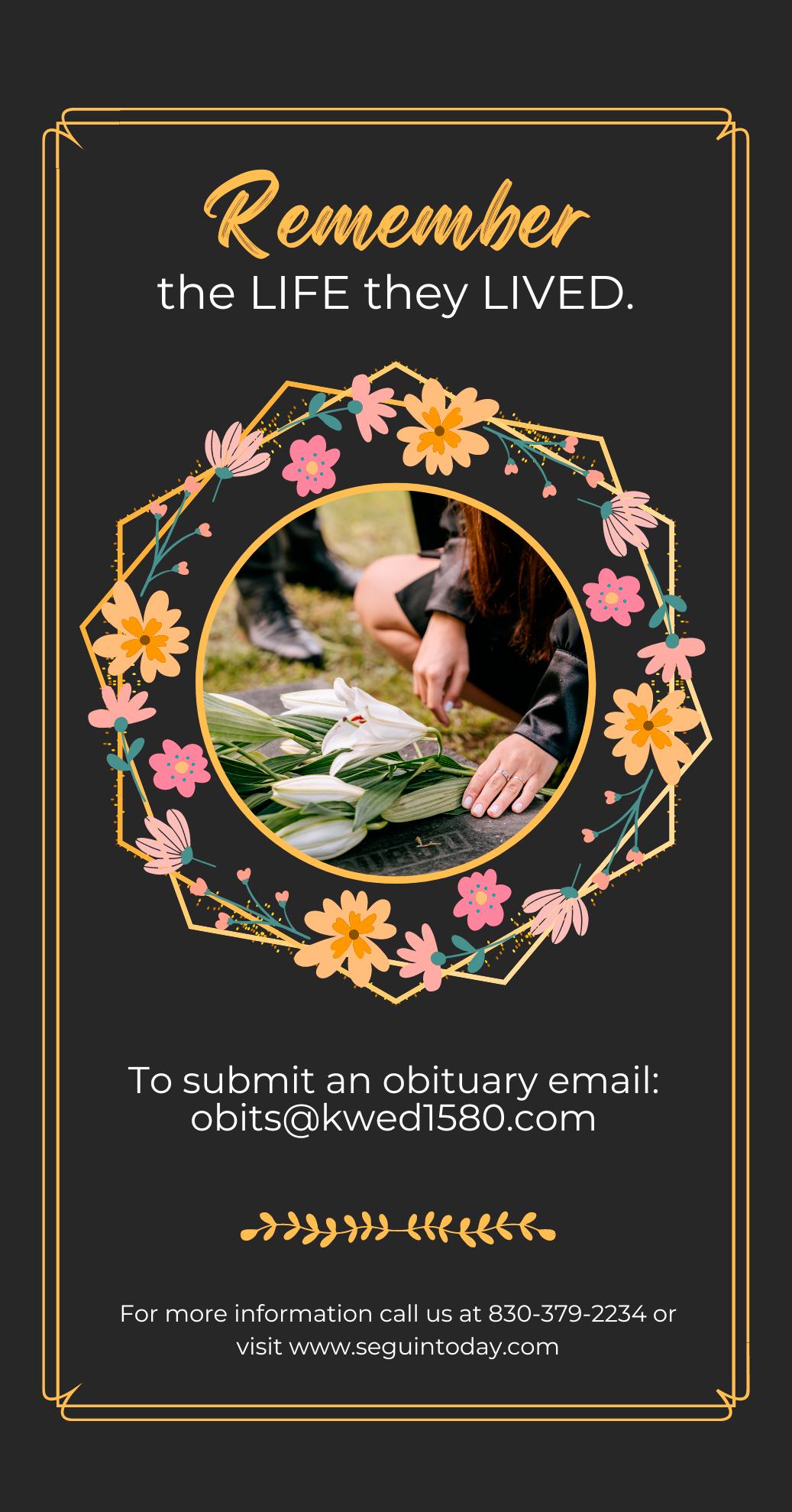 We invite you to join us as we celebrate her life with a memorial service planned for 2:00 p.m. on Friday, April 14th, 2023 at Tres Hewell Mortuary. Visitation will be held prior to the service from 1:00pm-2:00pm with a reception following at the Seguin Silver Center.