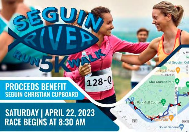 Online registration is avaible at www. athleteguild.com/event/seguin-tx/2023-seguin-5kriver-runwalk. Again, registration on the day of the event gets underway at 7:30 a.m. Saturday.