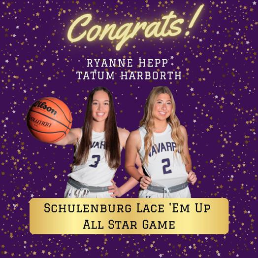 (Schulenburg) -- Navarro graduating seniors Tatum Harborth and Ryanne Hepp have been selected to play in the Schulenburg Lace’em Up All-Star Girls Basketball Game next month at Schulenburg High School.