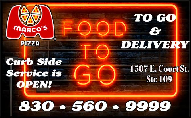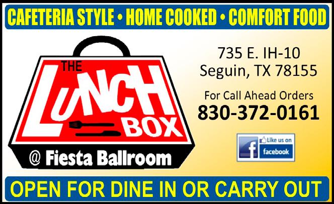 www.SEGUINTODAY.com TUE. JUNE 13, 2023 15 What’s What’s What’s Cooking Cooking Cooking IF you DON’T feel like cooking tonight, cure your case of Hot, fresh, local & READY to serve YOU! WITH... Find out What’s Cooking every hour, by listening to AM 1580 KWED on your radio, OR online at SEGUINTODAY.COM Japanese Sushi & Steak Restaurant 830-433-9805 110 E. Court St. ebiebisushiseguin@gmail.com Whether it’s our Hibachi grill, or our specialty sushi rolls...there is something for everyone! GERONIMO COFFEE HAUS signature coffee & ice cream scoops 830.243.2495 geronimocoffeehaus@gmail.com 6811 N. State hwy 123, Seguin GRAND BUFFET Early Bird Senior Special! 60 years and older LUNCH $8.99 Mon-Fri, 2pm - 3:30pm DINNER $10.99 Mon-Thu, 3:31pm - 5:00pm 1463 E. Court St. 830-379-8008 Limited time dine in ONLY 2 Locations Open Dine In & Drive Thru MARION LOCATION 830-914-2572 129 W. San Antonio St. Marion, TX 78124 SEGUIN LOCATION 830-433-4201 921 S. Hwy 123 BYP Seguin, TX 78155 Mon-Thu 11am-8pm, Fri & Sat 11am-9pm Seguin location NOW OPEN SUNDAYS 11am-3pm