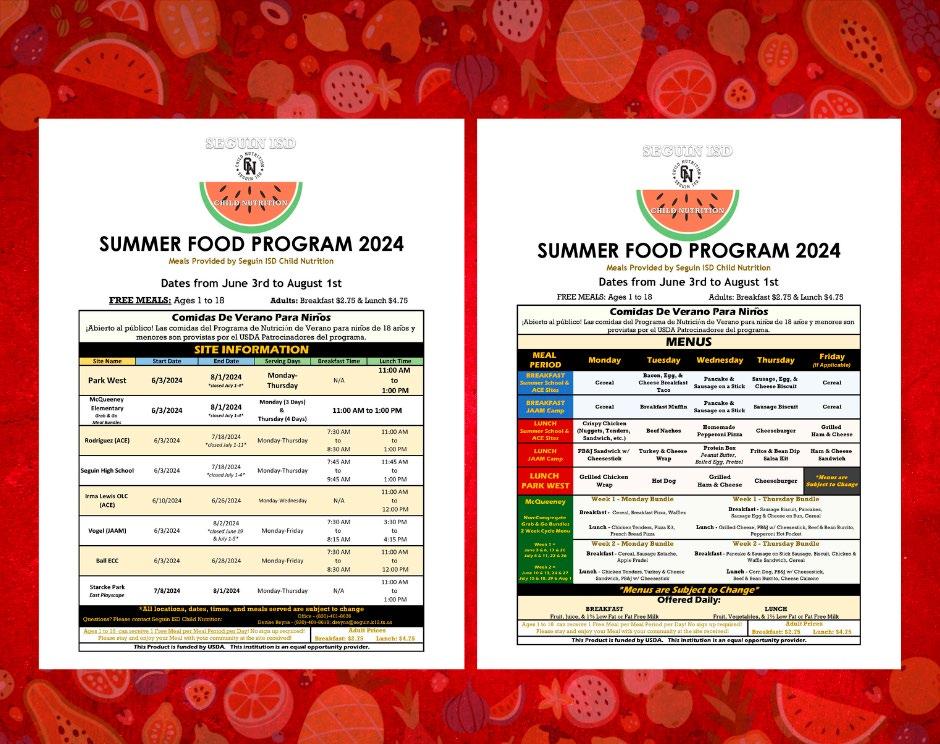 “So at all of our summer locations, which we have the full list on our Seguin ISD menu web page under our Child Nutrition Department, for all of our locations during the summer months, any child from Seguin or another state or another country, anybody 18 and under can