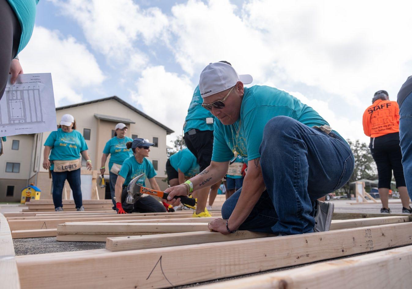 The volunteers hammered away in shifts -- piecing together 2x4’s for dozens of wall panels to be used for future homes. The event was held outside TLU’s Seguin Hall located just off of West Court Street.