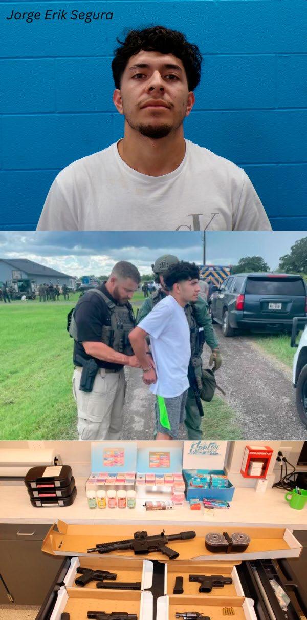 Segura was taken into custody and booked into the Guadalupe County Jail. Charges include Aggravated Assault with a Deadly Weapon and Possession with Intent to Distribute Controlled Substances.