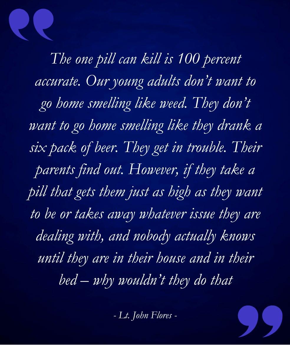 “The one pill can kill is 100 percent accurate. Our young adults don’t want to go home smelling like weed. They don’t want to go home smelling like they drank a six pack of beer. They get in trouble. Their parents find out. However, if they take a