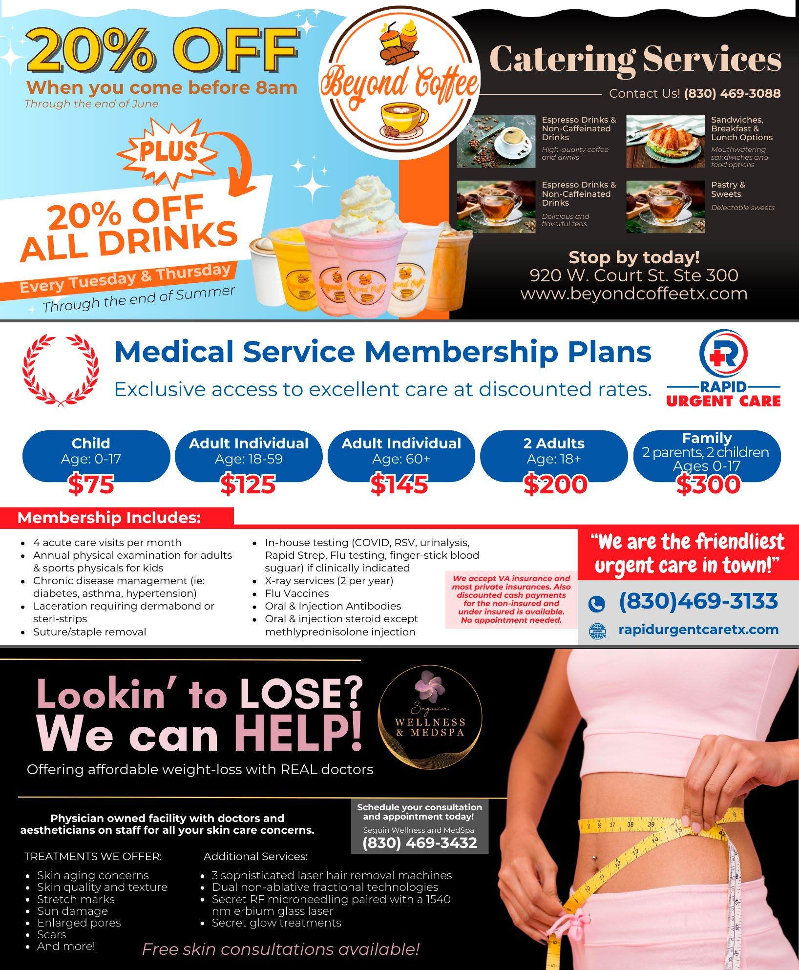 There will be a Food Distribution Event from 9 to 11 a.m. Saturday, August 24 at GRMC, located at 1215 E. Court St. in Seguin. Pre-register at www. Freshtrak.com.