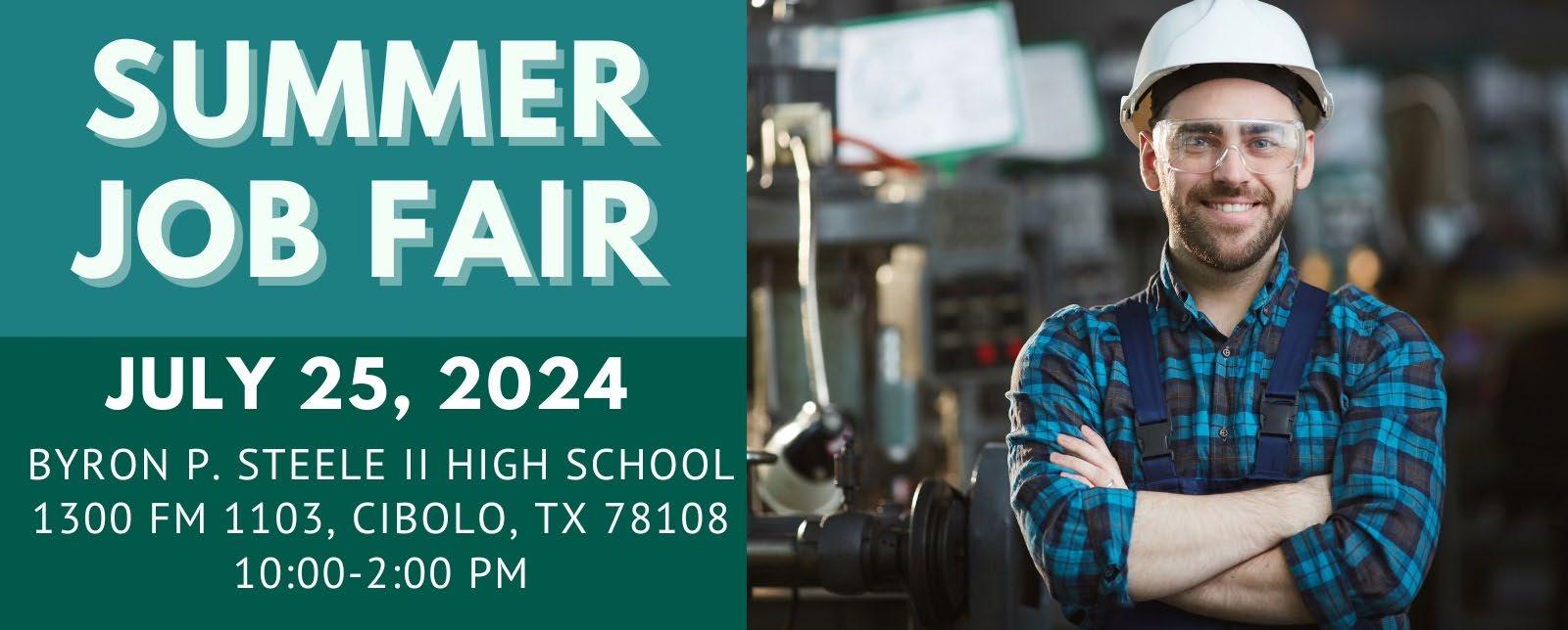 July 25 at Byron P Steele II High School, located at 1300 FM 1003 in Cibolo. For more information, visit https://info.seguinedc.com/regionaljobfair-jobseeker-07-25-2024.