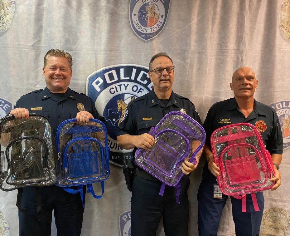 The Seguin Police Department and Seguin Fire Department continue to conduct a backpack drive to be donated to the Seguin Housing Authority. The departments hope to collect 200 clear backpacks by Tuesday, July 30.