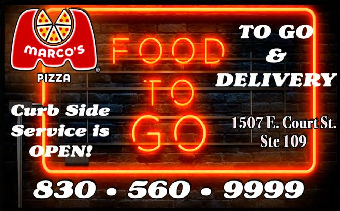 www.SEGUINTODAY.com TUE. AUGUST 1, 2023 7 What’s What’s What’s Cooking Cooking Cooking IF you DON’T feel like cooking tonight, cure your case of Hot, fresh, local & READY to serve YOU! WITH... Find out What’s Cooking every hour, by listening to AM 1580 KWED on your radio, OR online at SEGUINTODAY.COM Japanese Sushi & Steak Restaurant 830-433-9805 110 E. Court St. ebiebisushiseguin@gmail.com Whether it’s our Hibachi grill, or our specialty sushi rolls...there is something for everyone! GERONIMO COFFEE HAUS signature coffee & ice cream scoops 830.243.2495 geronimocoffeehaus@gmail.com 6811 N. State hwy 123, Seguin GRAND BUFFET Early Bird Senior Special! 60 years and older LUNCH $8.99 Mon-Fri, 2pm - 3:30pm DINNER $10.99 Mon-Thu, 3:31pm - 5:00pm 1463 E. Court St. 830-379-8008 Limited time dine in ONLY 2 Locations Open Dine In & Drive Thru MARION LOCATION 830-914-2572 129 W. San Antonio St. Marion, TX 78124 SEGUIN LOCATION 830-433-4201 921 S. Hwy 123 BYP Seguin, TX 78155 Mon-Thu 11am-8pm, Fri & Sat 11am-9pm Seguin location NOW OPEN SUNDAYS 11am-3pm