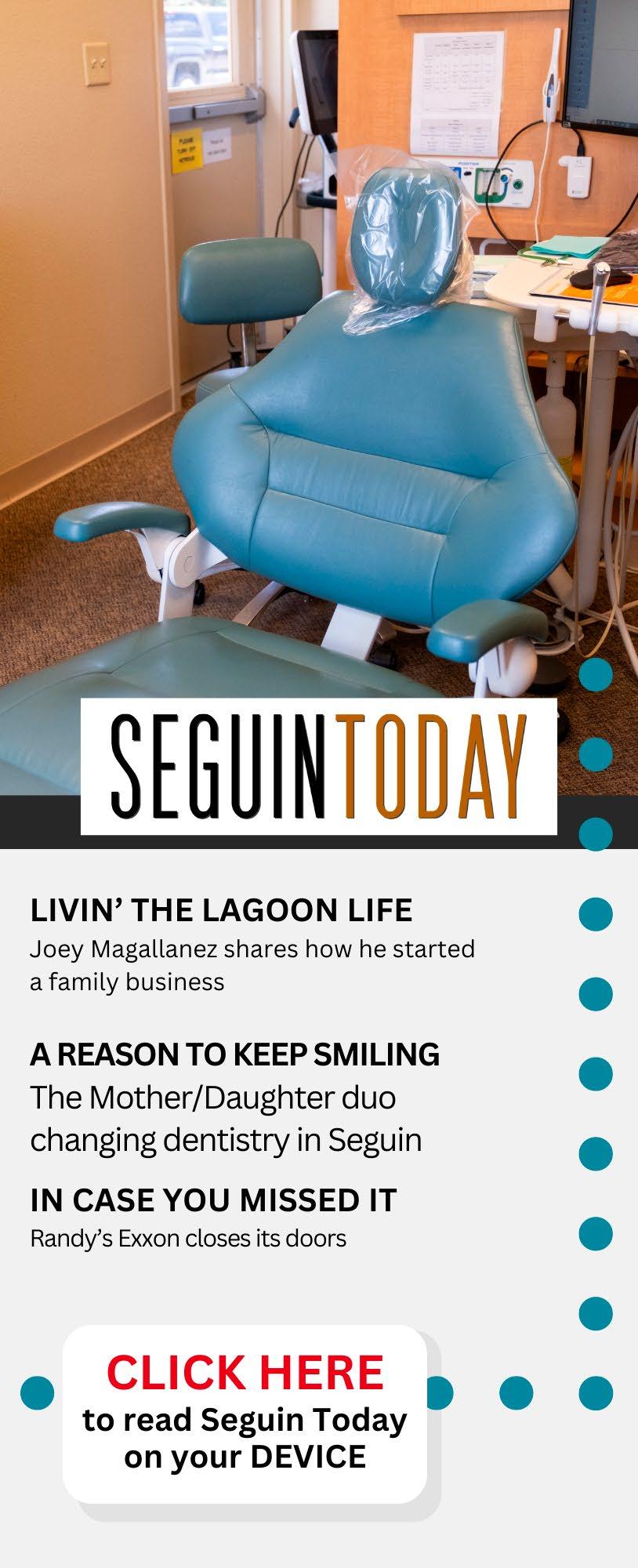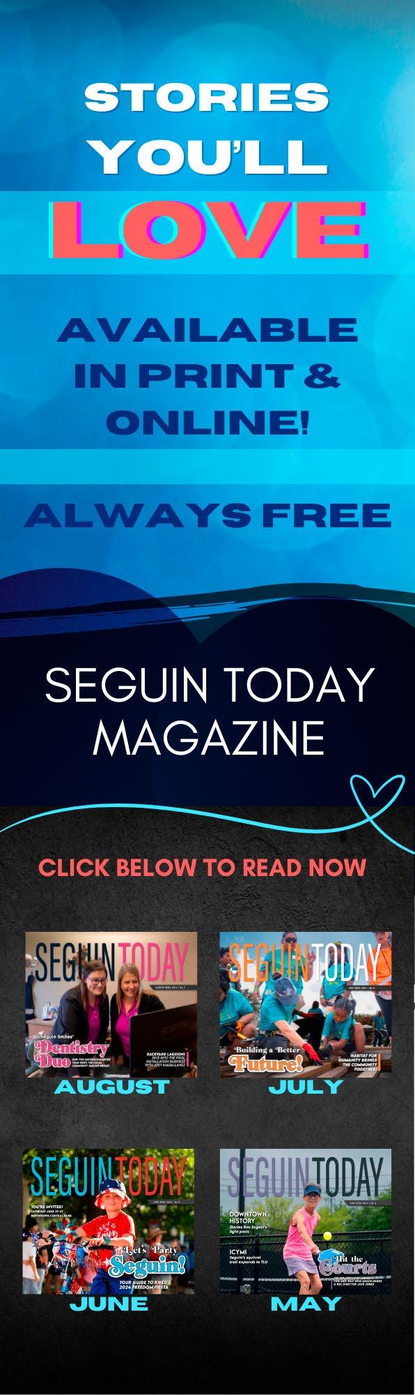 The City of Seguin is now accepting applications for the Business Improvement Grant (BIG) Program. Applicants may be eligible to receive up to a 75 percent matching grant, with a maximum grant awarded to an applicant not to exceed $10,000. Improvements and other expenditures eligible under the Seguin BIG Program include facade improvements, sign improvements, site improvements, and other real property improvements. Program Guidelines and Applications are available online at www. SeguinTexas.gov or at www.SeguinEDC. com. Applications must be submitted through the BIG application portal which can be accessed by visiting: https://bit.ly/ seguin-big24 by the close of business on the last day of each month. For more information, visit www.SeguinEDC.com, or call 830-401-2476.