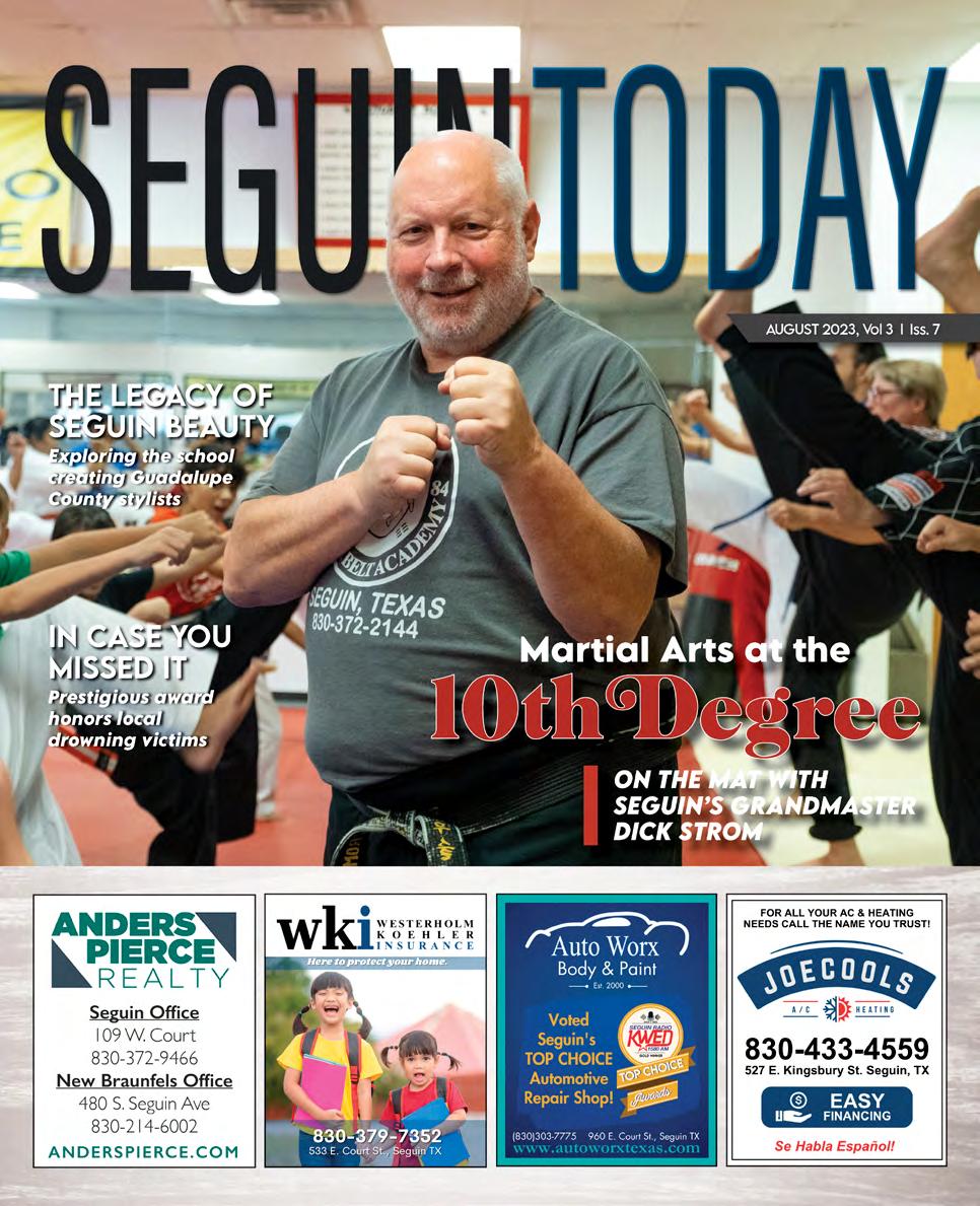 Seguin Today is back with an all new issue and two great stories you’ll want to check out. First up, you’ll step inside the doors of Seguin Beauty School where the next generation of Guadalupe County stylists are learning their craft. Then in this month’s cover story you’ll get to know Dick Strom, Seguin’s martial arts Grandmaster. Grab a hard copy around town, or read it online here.
