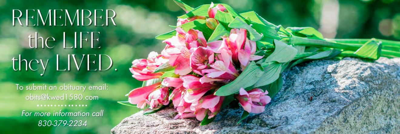 Memorial contributions may be made to the charity of one’s choice. You are invited to sign the guest book at www.tresehwell.com. Arrangements are under the direction of Tres Hewell Mortuary, 165 Tor Dr., Seguin, Texas, 78155, 830-549-5912.