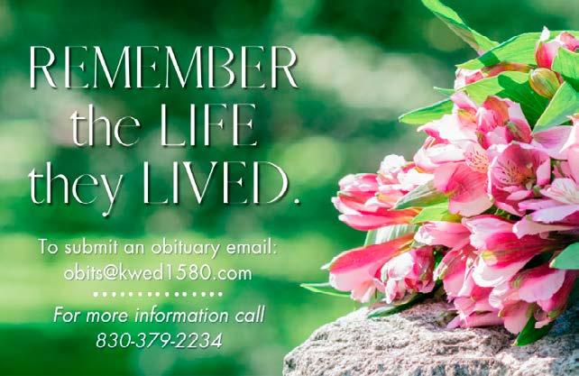 Memorial contributions can be made to St. Andrew’s Episcopal Church, Mid-Texas Symphony, The Seguin Conservation Society, or The Christian Cupboard.