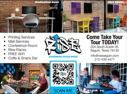 www.SEGUINTODAY.com TUE. SEPTEMBER 12, 2023 21 CLASSIFIEDS Place your ad in the CLASSIFIEDS by visiting the KWED office located at 609 E. Court St. during regular business hours. Or call us at 830-379-2234 Need Office Space? As low as $75/month www.riseseguin.com
