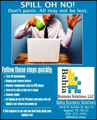 www.SEGUINTODAY.com WED. SEPTEMBER 13, 2023 4 BUSINESS CONNECTION Keeping you plugged in to BUSINESS in SEGUIN! Get your business CONNECTED! Our Business is to Protect Yours 533 E. Court, Seguin 830-379-7352 We have Seguin HOME l AUTO l LIFE BUSINESS (830) 379-3730 715 E Court St, Seguin, TX 78155 CALL US for a quote TODAY! COVERED Leroy Marc Michael