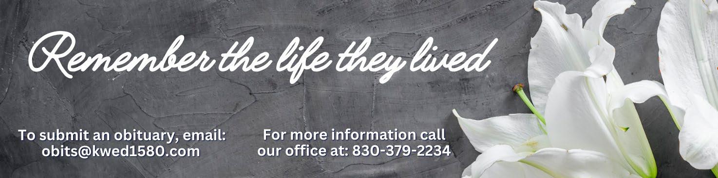A Memorial Service is scheduled for Saturday, October 19, 2024 from 1:00 PM to 2:00 PM with visitation starting at 12:00 PM to 1:00 PM at Sunset Memorial Oaks Funeral Home 415 S. Business 35 New Braunfels, Texas.