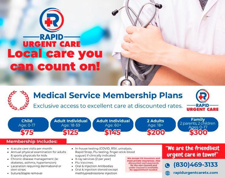 The Guadalupe Valley Young Marines need volunteers. They promote a healthy, drug-free program and need males, 19 years and up who would like to see the program grow by contributing time to help future citizens, boys and girls 8 to 18. Positions available include computer input, physical fitness training, planning/logistics, and medical. Contact Dina Dillon at 423-227-9610 or visit www. gvyoungmarines.org.