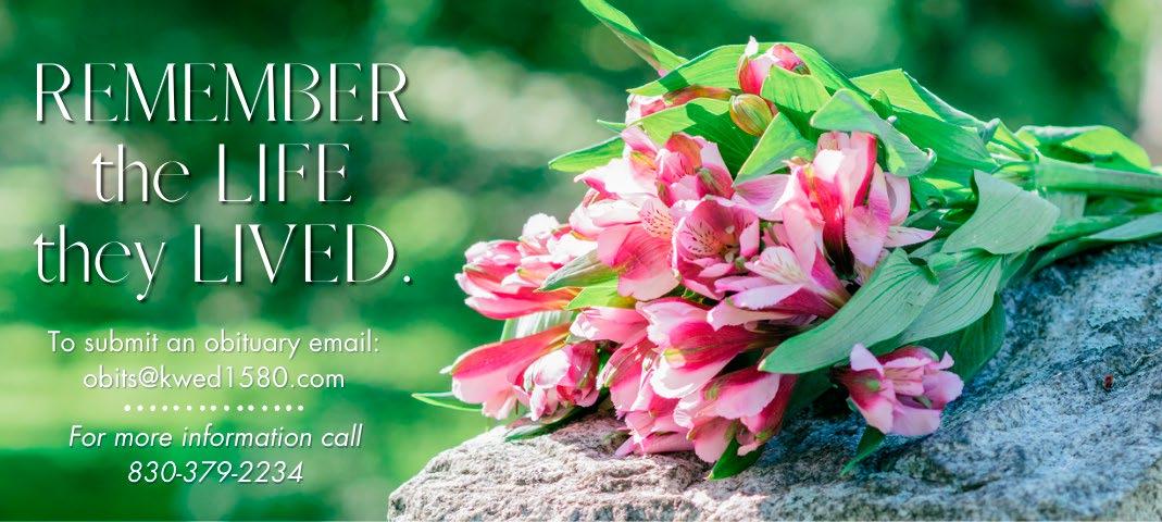You are invited to sign the guest book at www.treshewell.com. Arrangements are under the direction of Tres Hewell Mortuary, 165 Tor Dr., Seguin, Texas, 78155, 830-549-5912.