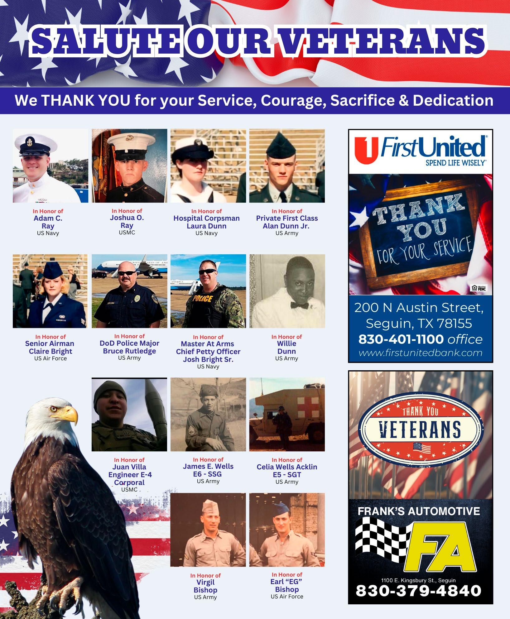 Texas Lutheran University will have its 2nd Annual Dia De Los Veteranos from 3 to 7 p.m. on Saturday, Nov. 23 in the Langner Hall parking lot, located at 1000 W. Court St. in Seguin. There will be a car show & shine, free food and drinks, TLU Mariachi performance, live graffiti art, photo booth, moon bounce, vendor market, book reading and signing and music by Dj Chuko. There is no registration fee for the car show and check in is from 10 a.m. to 2 p.m. For more information, call 830-372-6073.