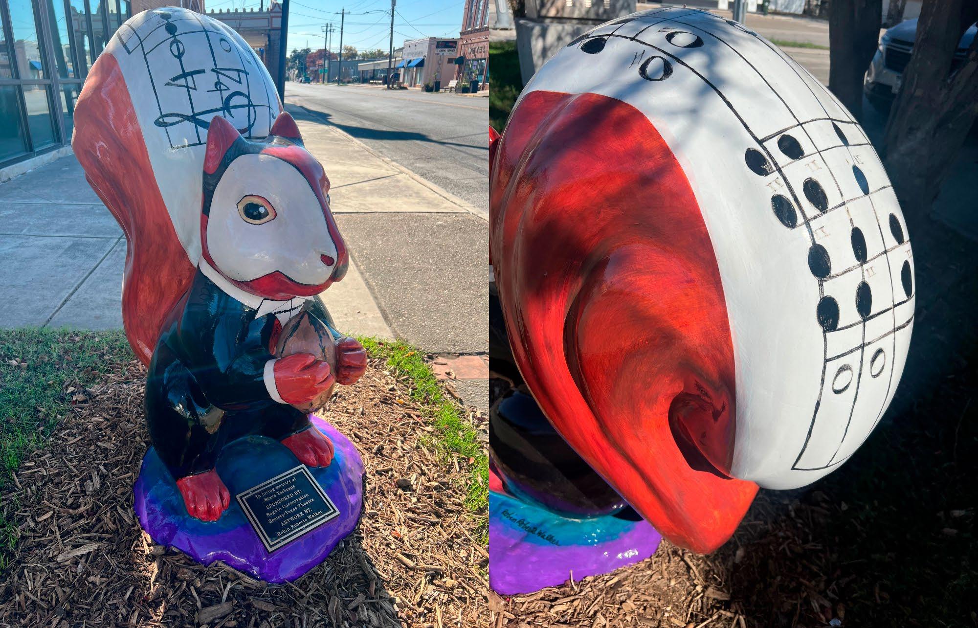 This marks the 18th squirrel for the city-wide trail which promotes art in public spaces. The squirrels are sponsored by community members and organizations who then commission a local artist to paint them. The cost to sponsor a squirrel is $2,500. Those interested in the program are asked to contact the Seguin Main Street Program at 830-401-2448.