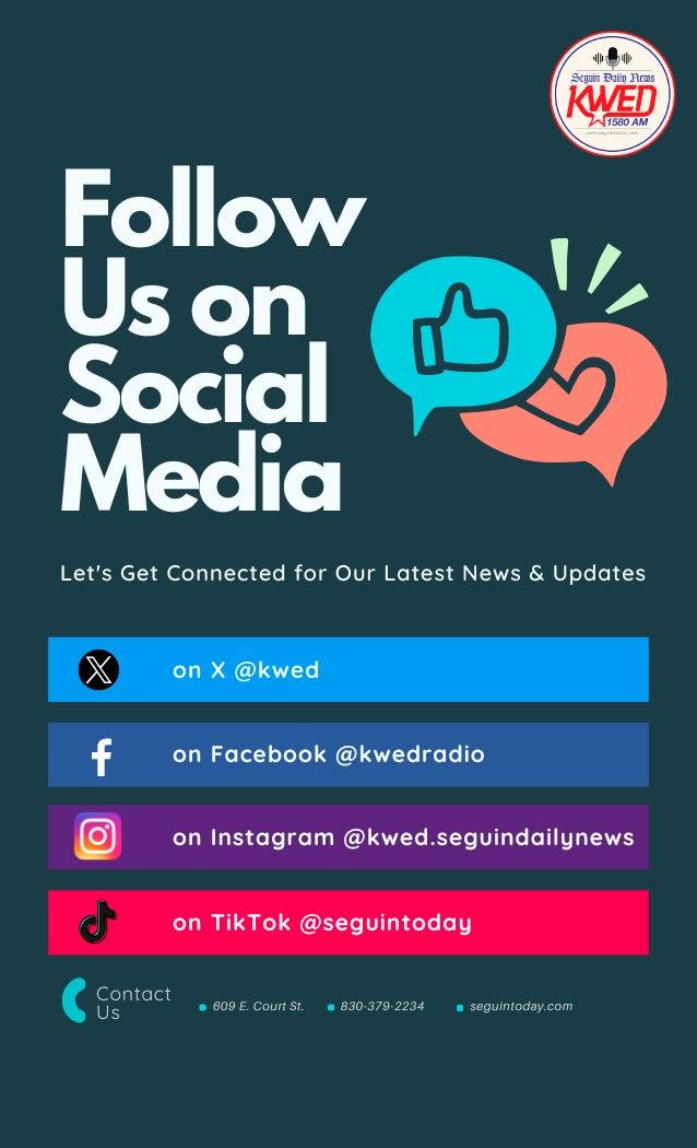 To ensure non-profit organization’s meetings and events appear in this calendar, send information to: communitycalendar@kwed1580.com, or drop off the information at the Seguin Daily News/KWED offices located at 609 E. Court St. in Seguin. For best results, submit information at least two weeks prior to the event.