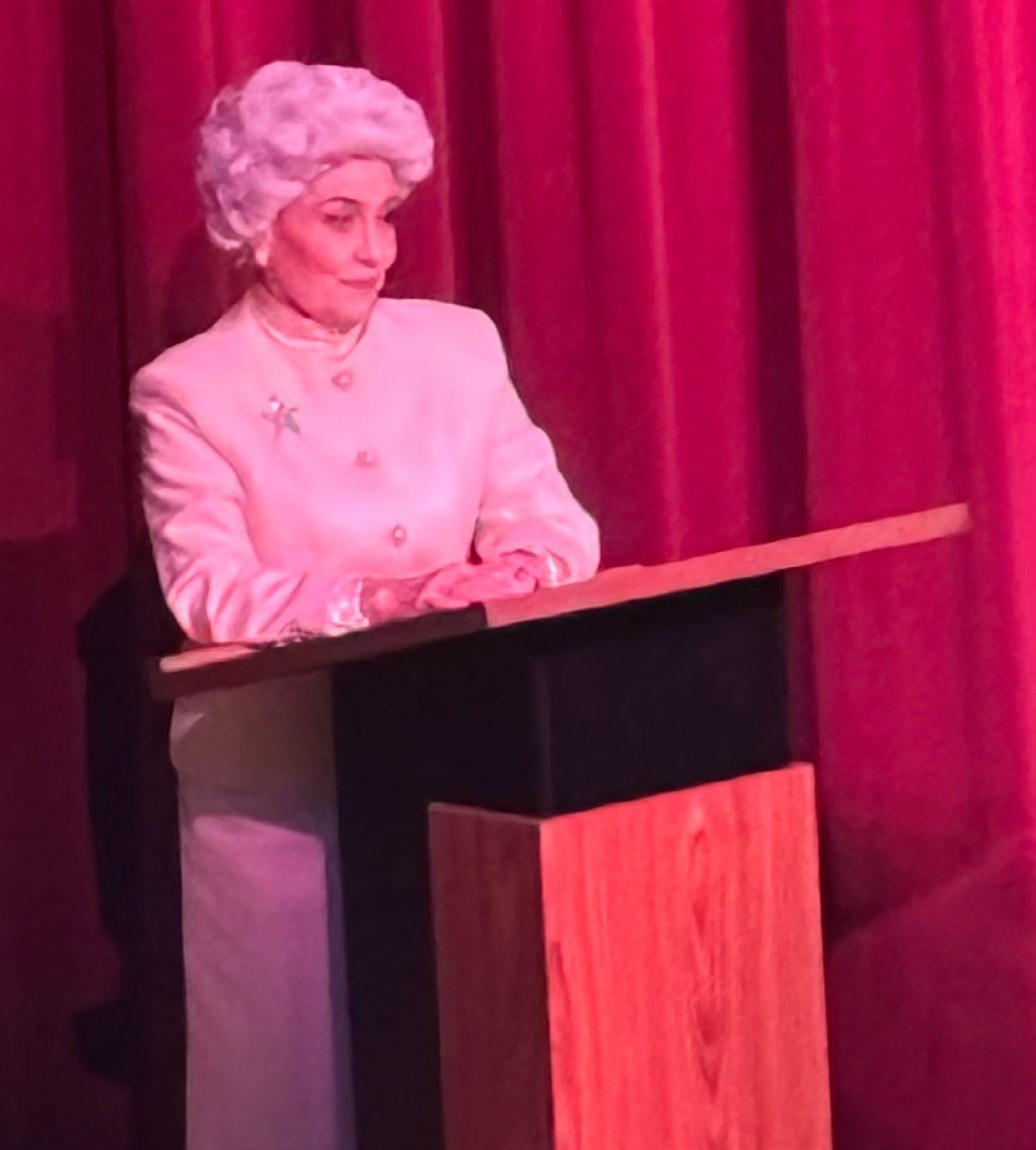 Calhoun says the play goes on to tell stories about various parts of Richards’ life and how that all helped to shape who she was in her public and private life. The story is presented by talented local actress Mary Jane Windle, who takes on the role of Governor Richards and begins with that special speech.