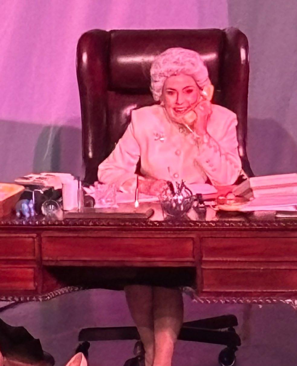 “Ann starts giving this speech to the graduating class, that ends up being sort of autobiographical — letting us know who she was and how she grew up. Some of the things that she was exposed to at an early age, made her actually quite perfect in this ‘Good Old Boy’ politics of Texas. And then we immediately go into after she is elected governor. She sort of gives her accolades of what she was able to accomplish, and those accomplishments are not minor in any way, shape or form. When you come see the show, you’ll be able to see what they are. Then she goes into what it was like being the actual governor of Texas. So, we’re in the office with her and her assistant, Nancy. She’s always on the phone and we see sort of the circus of activity that is constantly going on all around and at all times, and somehow she is able to keep a thumb on top of every single thing that’s happening,” said Calhoun.