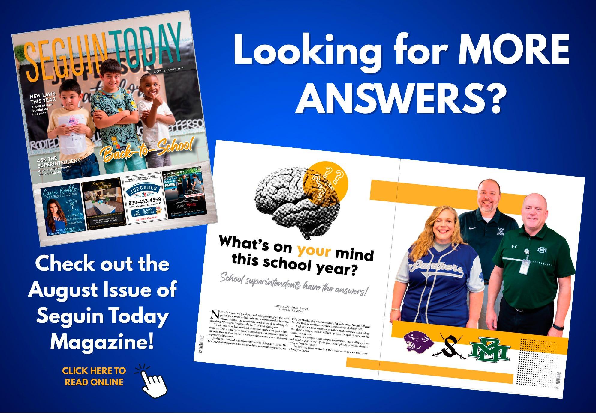 of the current high school into a new junior high. Additionally, construction on a second elementary school on Martindale Road is currently in the final design and permitting stages with the City of Seguin and scheduled to break ground later in the semester and open in August 2027. The district’s Long Range Facilities Master Planning Committee will reconvene on August 20 to address enrollment increases over the next 10 years with key considerations to include expanding the junior high school.