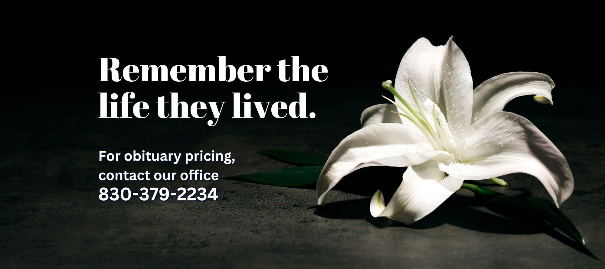 Visitation will be Monday, August 25, 2025 at 9:30 a.m., followed by a Celebration of Life service at 10:30 a.m. at the First Baptist Church in Seguin, TX. Donations may be made to the First Baptist Church in Seguin or the charity of your choice.