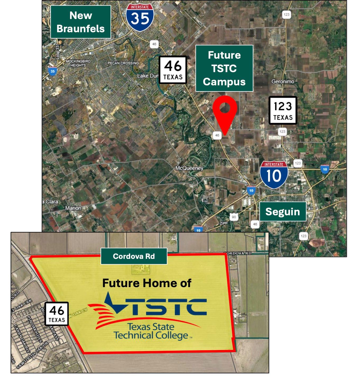 The tract, located at State Highway 46 and Cordova Road, will be conveyed to TSTC at a later date, clearing the way for the construction of a new campus designed to meet the workforce needs of a rapidly growing region.