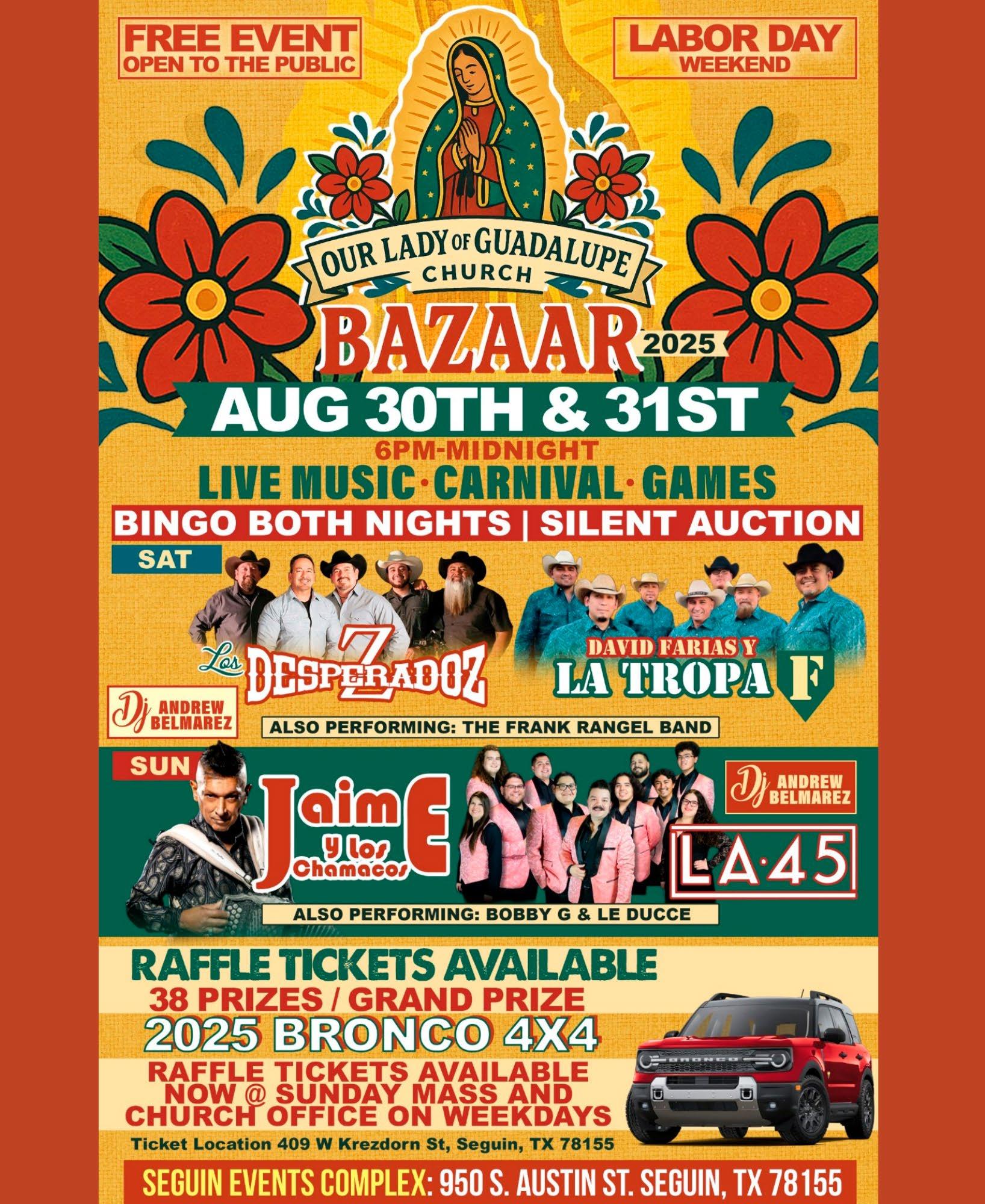 The Geronimo Lions will be hosting the First Friday Feast from 5:30 to 7:30 p.m. on September 5 at 390 Cordova Rd, Seguin. Guests can enjoy a $20 steak or fish dinner, with proceeds benefiting the Geronimo Fire Department. Entertainment will be provided by Madelyn Abrameit. Payment can be made by cash, check, or credit card at the door.