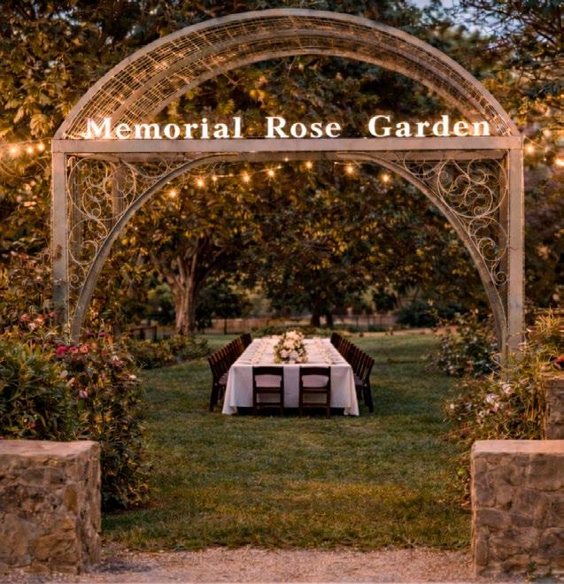 a commemorative wine tumbler to remember the night. Guests will be seated at beautifully arranged communal-style tables running through the Memorial Rose Garden. For those who prefer a more intimate setting, a limited number of private