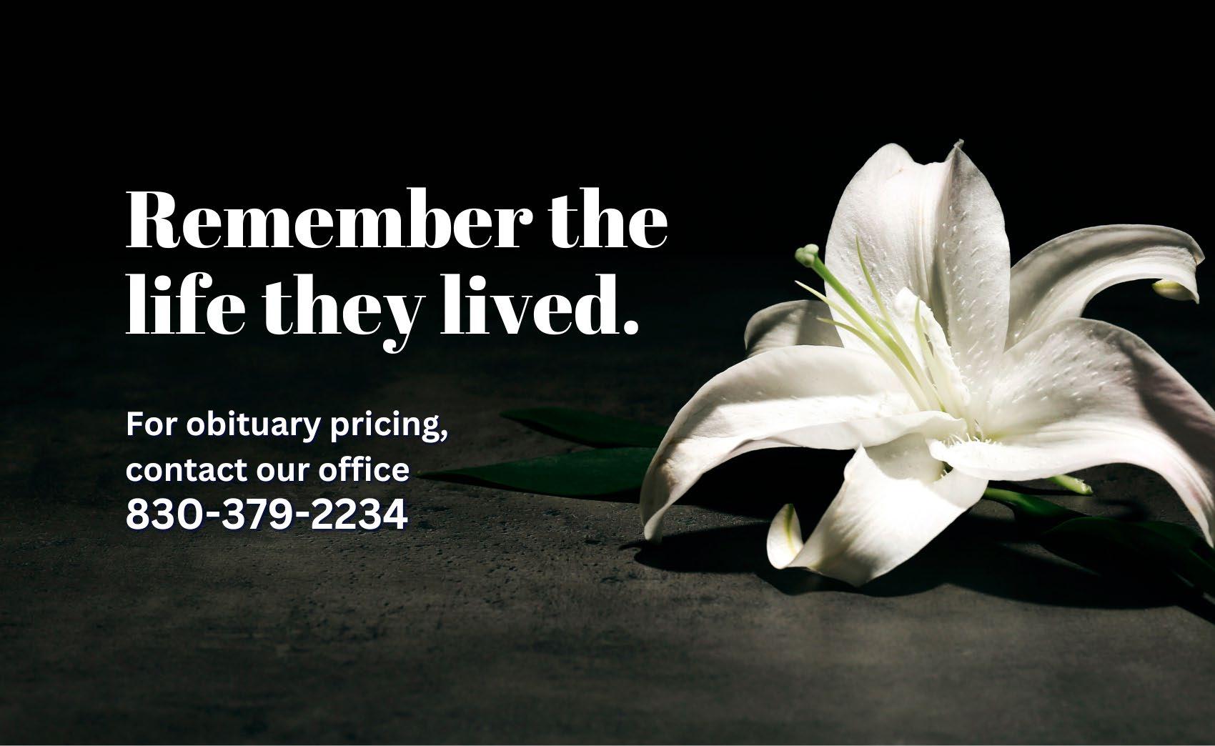 A memorial service will be held on Saturday, January 24, 2026, at 11:00 a.m. at Lifegate Church in Seguin, Texas.