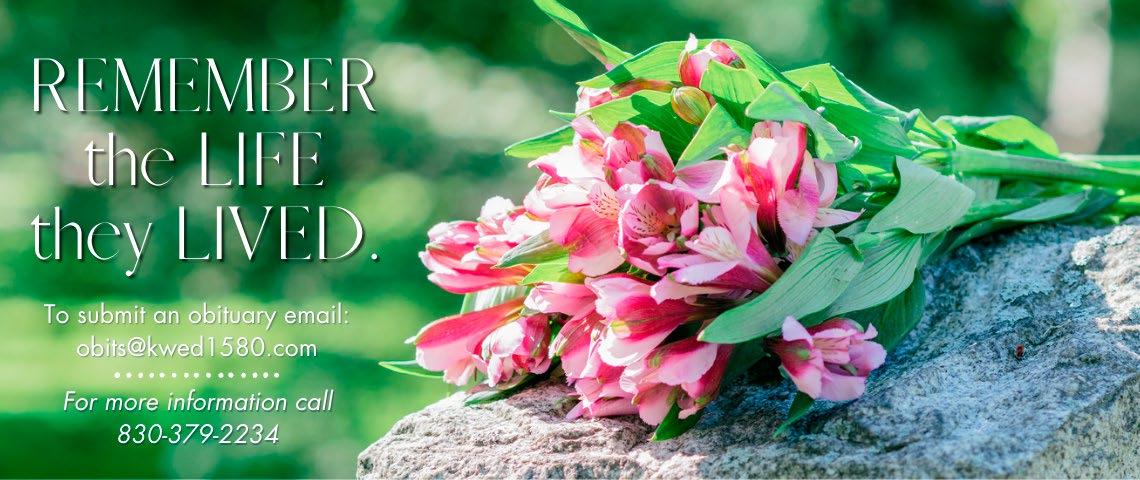 Funeral service will be Friday, September 5, 2025 at 10 a.m. at Tres Hewell Mortuary Chapel with the Reverend Ray Perales officiating. Interment will follow in San Geronimo Cemetery. A reception will follow in Hierholzer Hall at First Methodist Church.