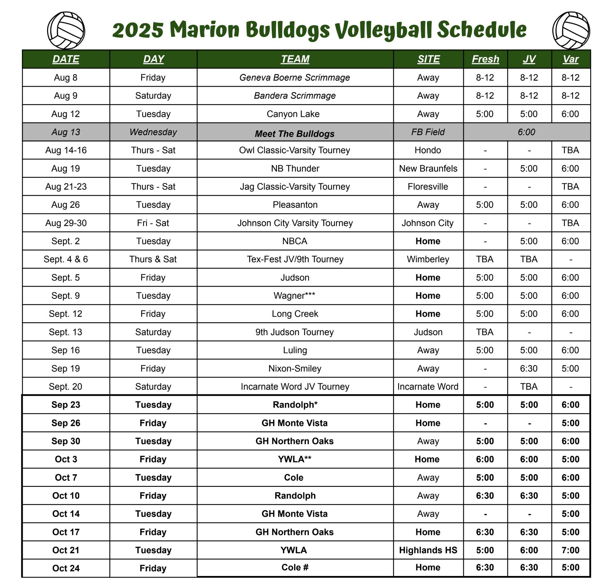 The Joel Call era in Marion starts with a non-district game at home on August 29th against Stockdale. The Bulldogs will have a short week for their second game when they take on New Braunfels Long Creek on a Thursday night in a game you’ll be able to hear on KWED radio. •
