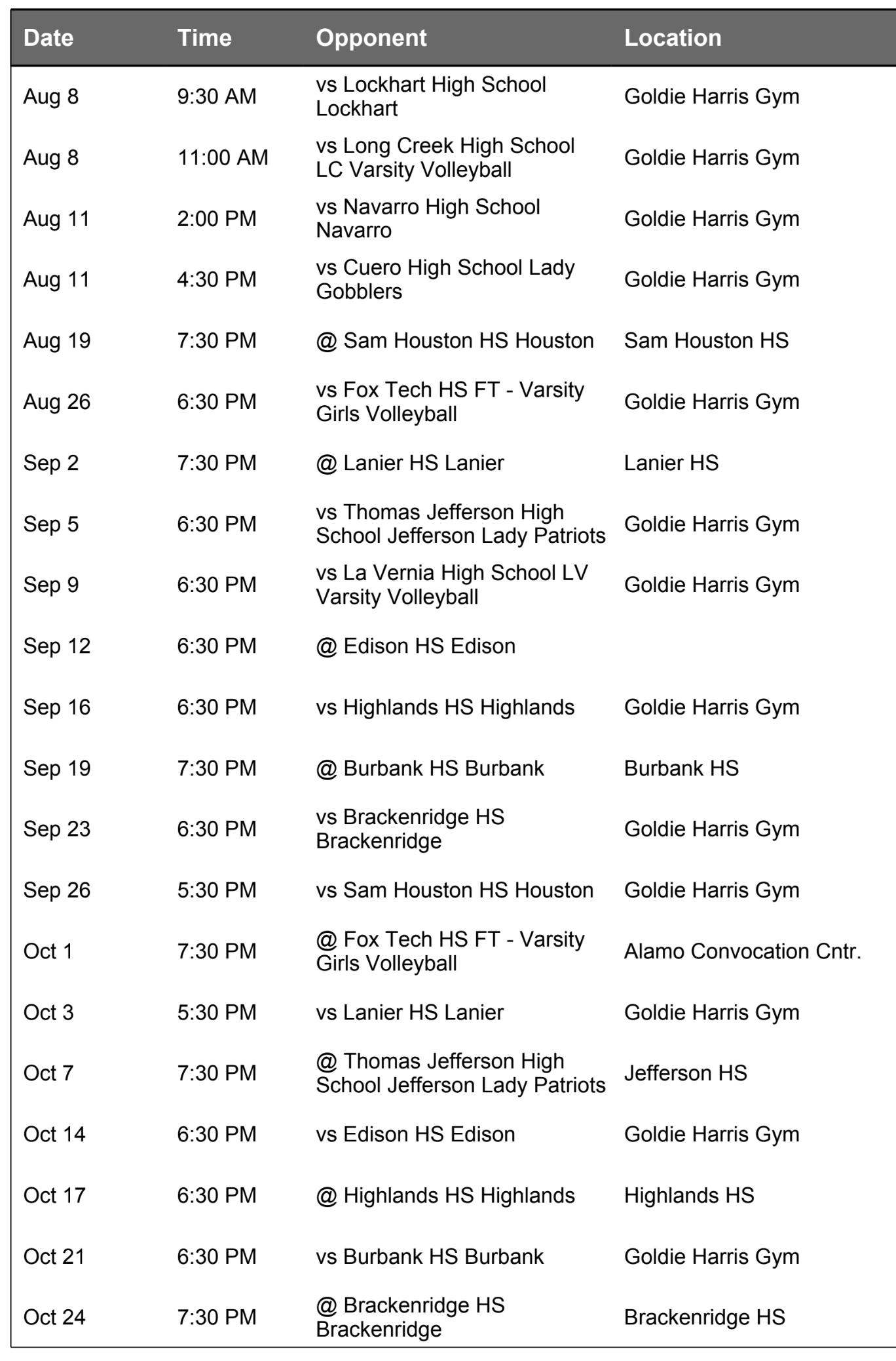 Aug. 29 7 PM vs. Stockdale