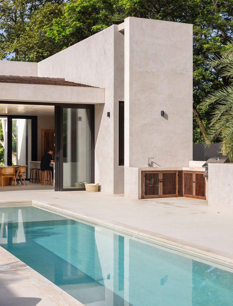 The design employs locally sourced materials and stucco as the main element, reflecting a commitment to sustainability and resource efficiency. By carefully selecting these materials, I ensured that the architecture acts as a canvas, letting the natural beauty of the surroundings shine through.