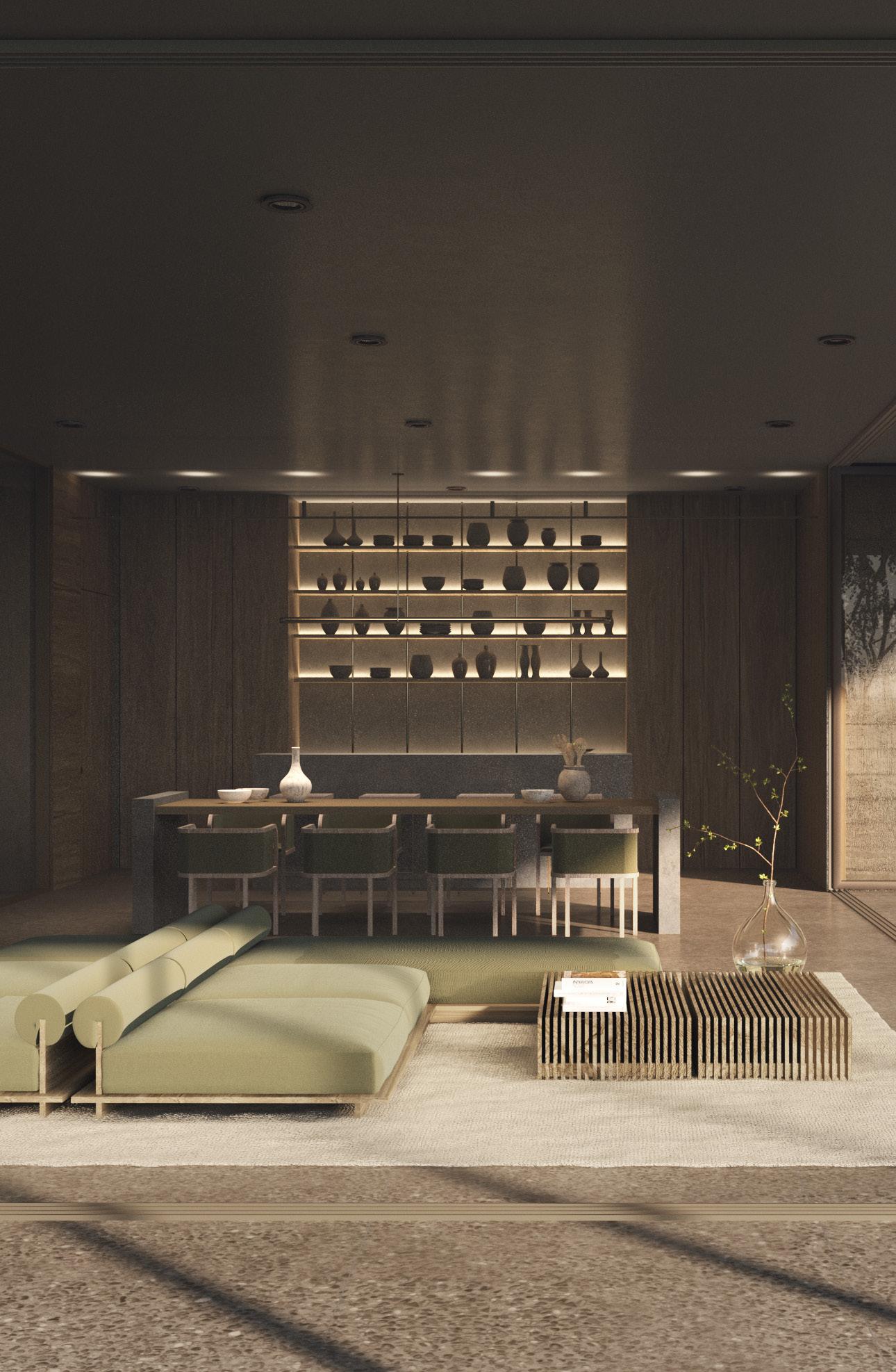 The main house is crafted with Feng Shui principles in mind, blending harmony and balance into its design. Curved wooden features grace the architecture, introducing a sense of femininity and softness while enhancing natural airflow throughout the space. These elegant curves are not only aesthetically pleasing but also foster a tranquil and balanced environment, aligning with the principles of energy flow and well-being.
