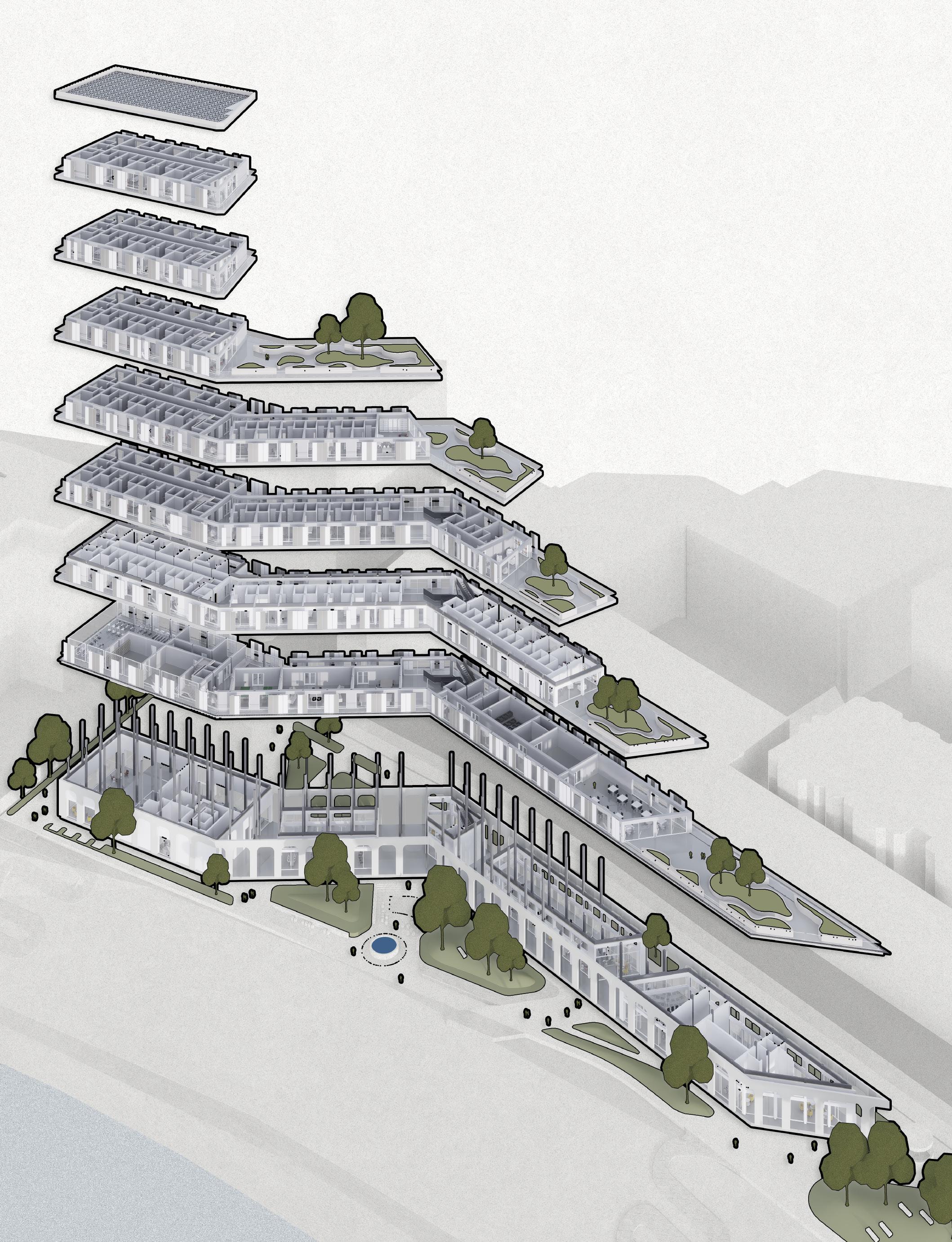 This was a collaborative Master’s project where we acted as a team. While the research was a team effort, all architectural graphics, 3D modeling, high-fidelity renderings, and technical planimetry shown here are my original work.