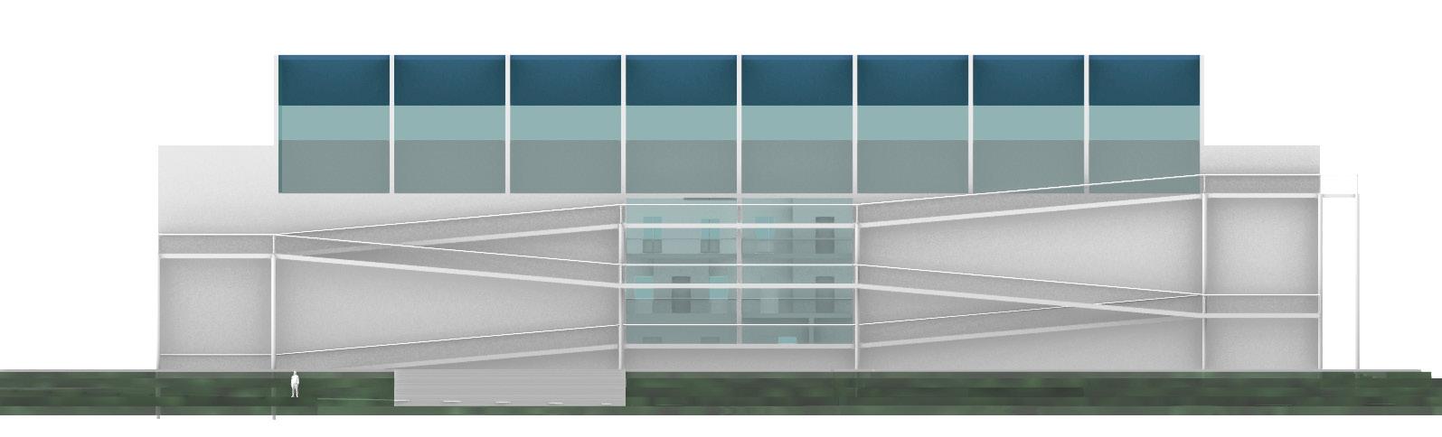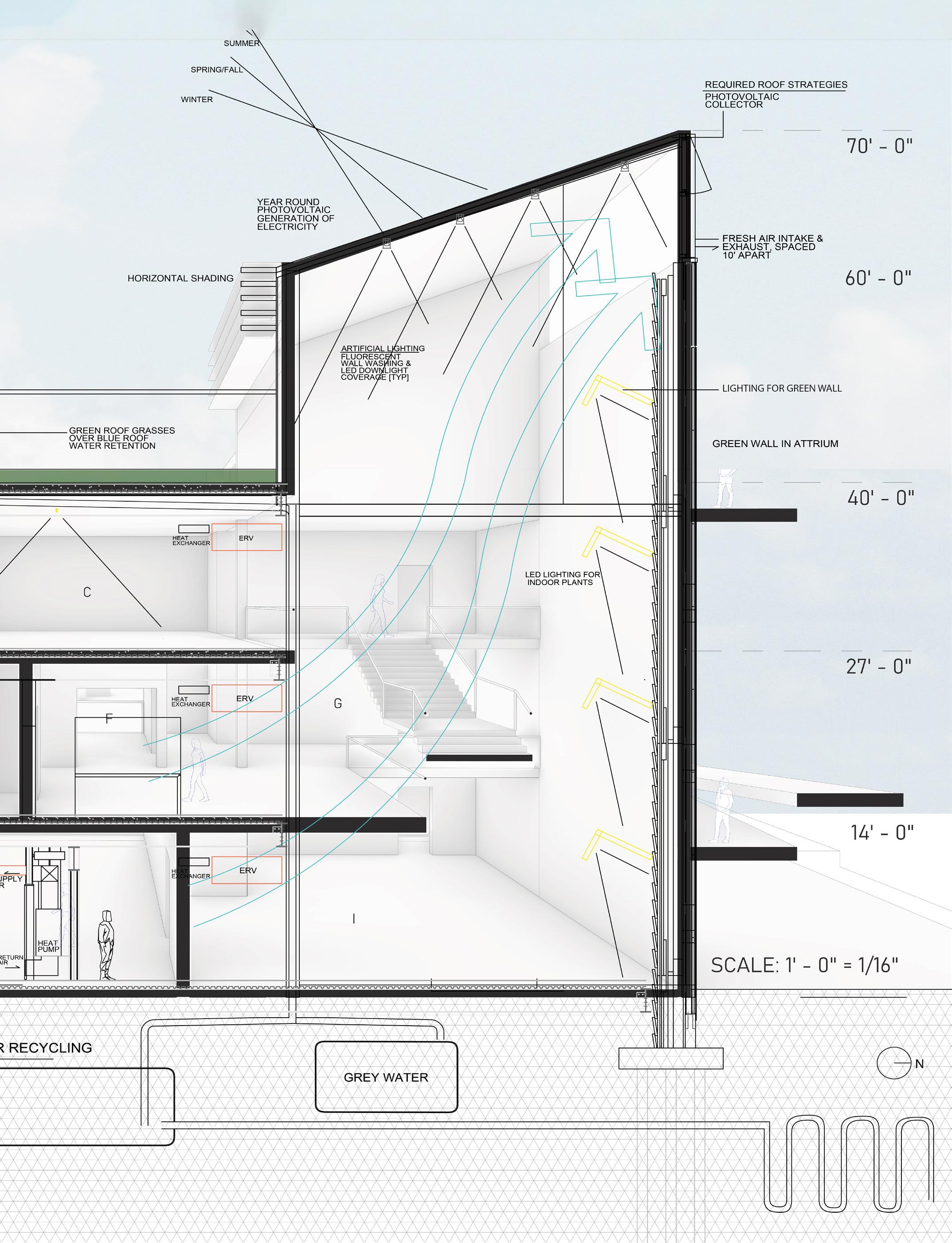 Created to house veterans, this tower in Brooklyn is comprised of modular single rooms. Veterans with physical disabilities are given rooms with larger exposed facades and balcony access while the units between with no balcony access are for those suffering from mental conditions that require housing that is more protected from the external surrounding. Community wellness spaces are placed on each floor to uphold the spirit of comradery. The swimming pool at the street level and theater on the second floor provides access for public to interact with the veteran community. Classrooms on the second floor facilitate a mentorship and support program with the students at a neighboring school. The option of a solar chimney is explored to draw air through the center of the building, naturally ventilating it.