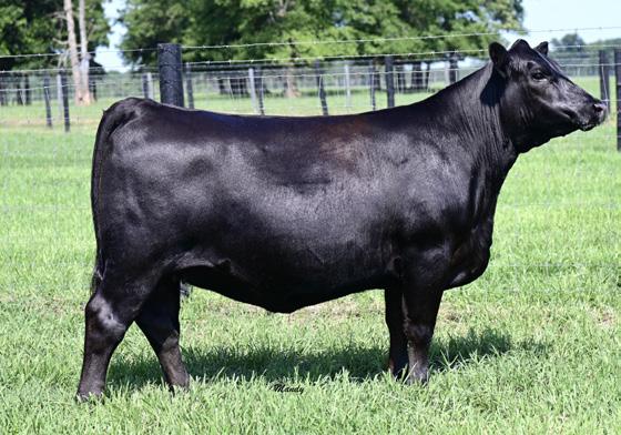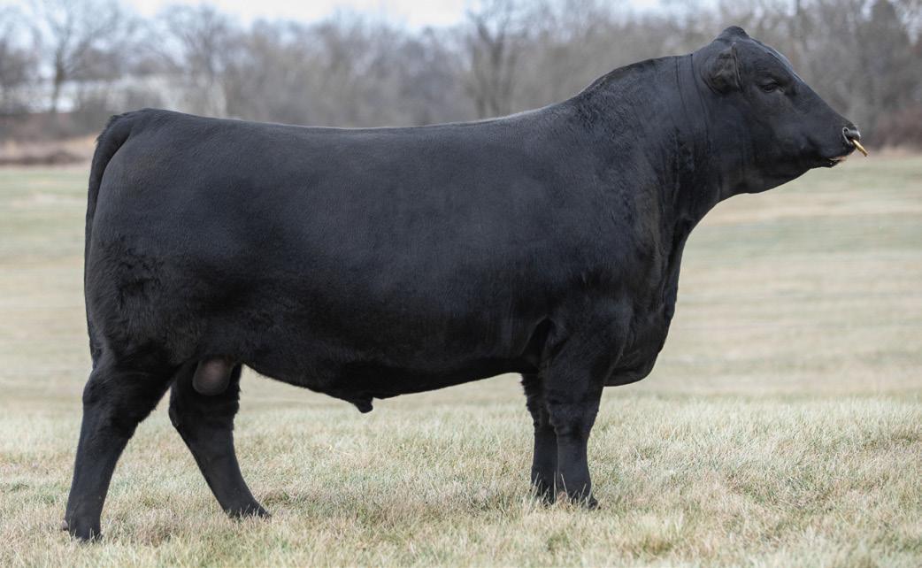 > His sire is powerfully constructed and has left his mark on the Angus breed by siring extra pounds and performance.