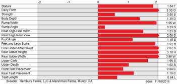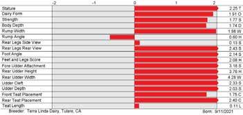 14HO16069 T-SPRUCE MS-SSI A MADURO-ET 8403235509444 Ahead x Nugent x Frazzled 99% RHA-I TR TP TC TV TL TY TD DMS: 246,126 aAa: 243 B-Casein: A2A2 K-Casein: BB CDCB-S Genomic Evaluation (12/22) Milk +967 80%R Net Merit (73%R) +$1,122 Protein +0.11% +62 DWP$ +$1,288 Fat +0.22% +102 Cheese Merit +$1,148 CDCB-S/HA Genomic Evaluation (12/22) Type +0.41 UDC +0.75 FLC -0.07 BWC -0.05 78%R GTPI +3029 Health and Fertility (12/22) SCS 2.63 75%R MAS +3.3 70%R PL +7.2 74%R LIV +4.4 70%R DPR +1.3 74%R HCR +0.8 74%R CCR +2.8 74%R FI +1.3 74%R SCE 2.4% 63%R WT$+$153 DCE 2.3% 57%R DSB 4.7% 54%R CW$ -$1 HHP$ +$1,215 250HO16257 DANHOF GD DENALI-ET 8403234744438 Gameday x Renegade x Frazzled 99% RHA-I TR TP TC TV TL TY TD DMS: 456,561 aAa: 432 B-Casein: A2A2 K-Casein: AB CDCB-S Genomic Evaluation (12/22) Milk +635 80%R Net Merit (73%R) +$991 Protein +0.11% +50 DWP$ +$1,170 Fat +0.32% +116 Cheese Merit +$1,018 CDCB-S/HA Genomic Evaluation (12/22) Type +1.46 UDC +1.75 FLC +0.66 BWC +0.87 79%R GTPI +3032 Health and Fertility (12/22) SCS 2.53 76%R MAS +3.9 70%R PL +5.6 74%R LIV +1.2 70%R DPR -0.7 74%R HCR +0.9 72%R CCR +0.0 74%R FI -0.4 74%R SCE 2.5% 63%R WT$+$207 DCE 2.5% 57%R DSB 5.5% 55%R CW$ -$21 HHP$ +$1,196 14HO16393 PINE-TREE ORGANIC-ET 8403147135994 Massey x Pursuit x Achiever 99% RHA-I TR TP TC TV TL TY TD DMS: 345,456 aAa: 243 B-Casein: A2A2 K-Casein: BB CDCB-S Genomic Evaluation (12/22) Milk +494 80%R Net Merit (73%R) +$1,154 Protein +0.10% +43 DWP$ +$1,278 Fat +0.20% +77 Cheese Merit +$1,180 CDCB-S/HA Genomic Evaluation (12/22) Type +0.24 UDC +1.03 FLC -0.12 BWC -1.21 78%R GTPI +2995 Health and Fertility (12/22) SCS 2.50 75%R MAS +5.6 70%R PL +9.6 74%R LIV +5.1 70%R DPR +3.1 74%R HCR +3.6 72%R CCR +5.1 74%R FI +3.3 74%R SCE 1.8% 62%R WT$+$203 DCE 1.2% 56%R DSB 3.4% 54%R CW$ -$2 HHP$ +$1,222 11