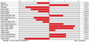 10 14HO16391 PINE-TREE EASTON-ET 8403147135998 Outcome x Pursuit x Achiever 99% RHA-I TR TP TC TV TL TY TD DMS: 123,135 aAa: 423 B-Casein: A2A2 K-Casein: BB CDCB-S Genomic Evaluation (12/22) Milk +1,628 79%R Net Merit (73%R) +$1,128 Protein +0.04% +62 DWP$ +$1,253 Fat +0.09% +90 Cheese Merit +$1,141 CDCB-S/HA Genomic Evaluation (12/22) Type +1.62 UDC +1.99 FLC +0.95 BWC -1.36 78%R GTPI +3101 Health and Fertility (12/22) SCS 2.70 75%R MAS +2.6 70%R PL +6.1 74%R LIV +1.9 70%R DPR +0.8 74%R HCR +1.8 72%R CCR +1.8 74%R FI +1.4 74%R SCE 1.7% 61%R WT$+$126 DCE 1.7% 57%R DSB 4.0% 55%R CW$ +$18 HHP$ +$1,090 7HO16396 OCD DRIVE FELIX-ET 8403238168700 Drive x Eisaku x Hal 99% RHA-I TR TP TC TV TL TY TD DMS: 345,135 aAa: 423 B-Casein: A2A2 K-Casein: BB CDCB-S Genomic Evaluation (12/22) Milk +787 79%R Net Merit (73%R) +$1,124 Protein +0.08% +47 DWP$ +$1,304 Fat +0.27% +108 Cheese Merit +$1,145 CDCB-S/HA Genomic Evaluation (12/22) Type +1.17 UDC +1.51 FLC -0.19 BWC -0.71 78%R GTPI +3070 Health and Fertility (12/22) SCS 2.60 75%R MAS +3.7 70%R PL +7.2 74%R LIV +3.8 70%R DPR +1.6 73%R HCR +3.1 71%R CCR +3.5 73%R FI +1.9 73%R SCE 2.3% 63%R WT$+$211 DCE 1.9% 57%R DSB 4.1% 54%R CW$ +$11 HHP$ +$1,195 14HO15865 WILRA SSI MNSHINER PERLE-ET 8403223871612 Moonshiner x Lionel x Achiever 99% RHA-I TR TP TC TV TL TY TD DMS: 345,135 aAa: 234 B-Casein: A2A2 K-Casein: AA CDCB-S Genomic Evaluation (12/22) Milk +983 79%R Net Merit (73%R) +$1,125 Protein +0.07% +52 DWP$ +$1,291 Fat +0.26% +114 Cheese Merit +$1,146 CDCB-S/HA Genomic Evaluation (12/22) Type +0.38 UDC +1.41 FLC -0.17 BWC -0.59 78%R GTPI +3049 Health and Fertility (12/22) SCS 2.59 75%R MAS +3.5 70%R PL +6.3 74%R LIV +3.1 70%R DPR +0.7 74%R HCR +2.8 73%R CCR +2.4 74%R FI +1.3 74%R SCE 1.4% 63%R WT$+$186 DCE 1.4% 59%R DSB 3.7% 56%R CW$ -$23 HHP$ +$1,175 SCR +1.9 76%R