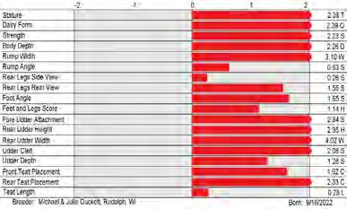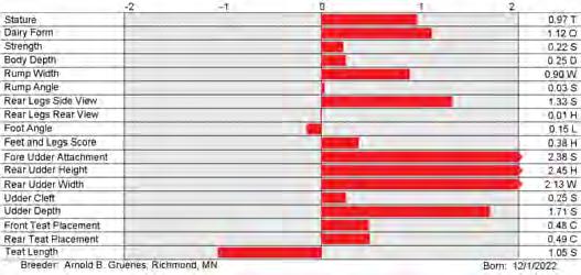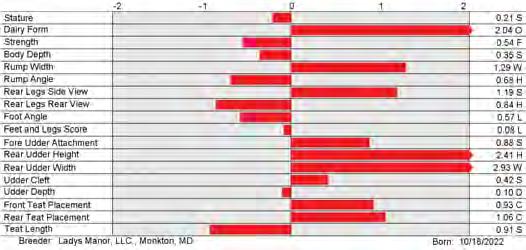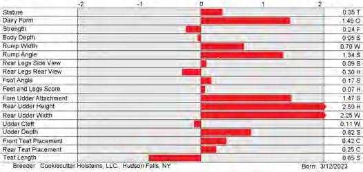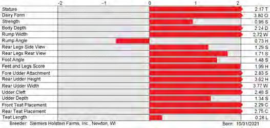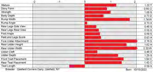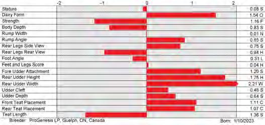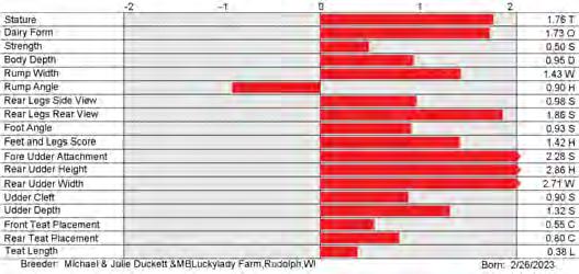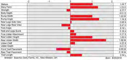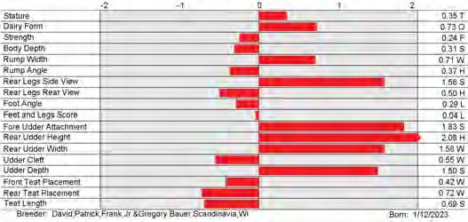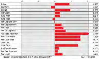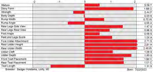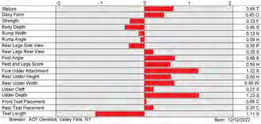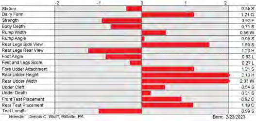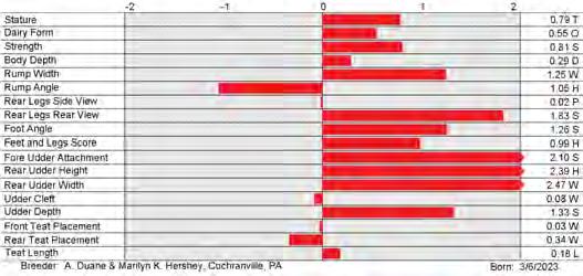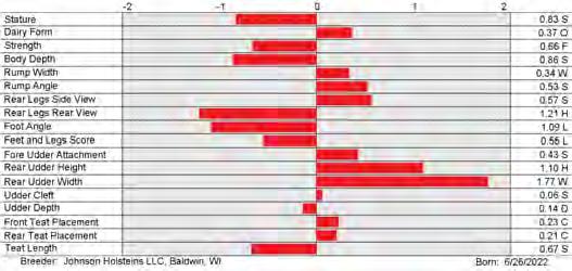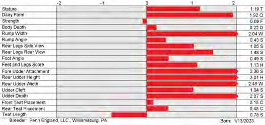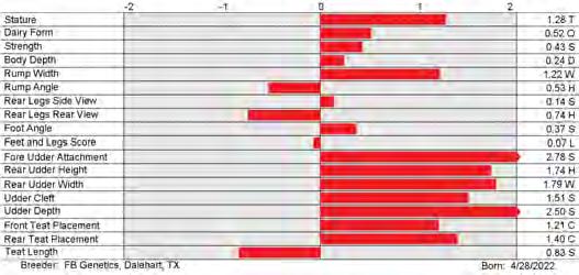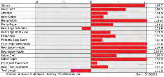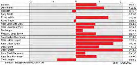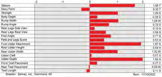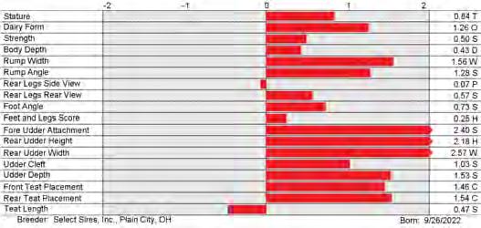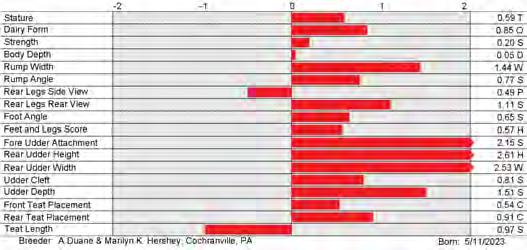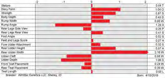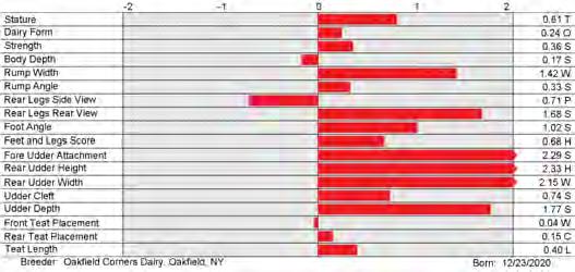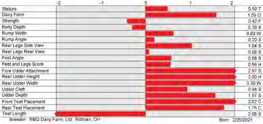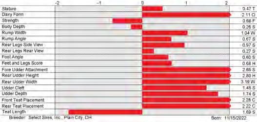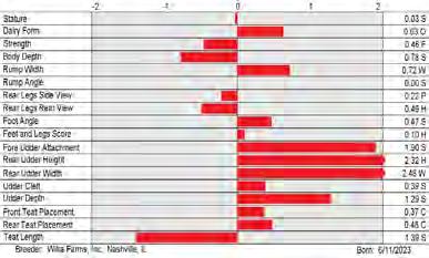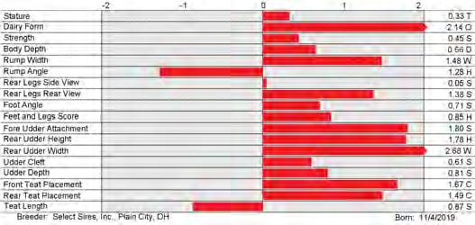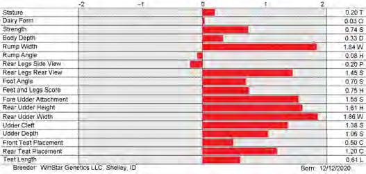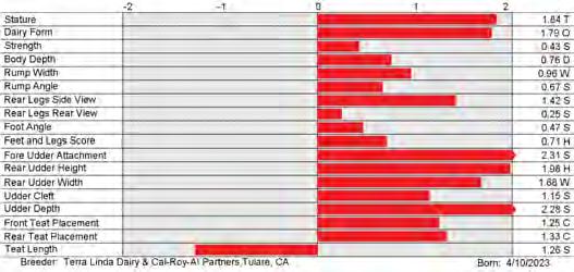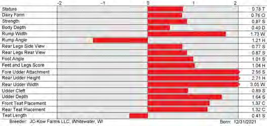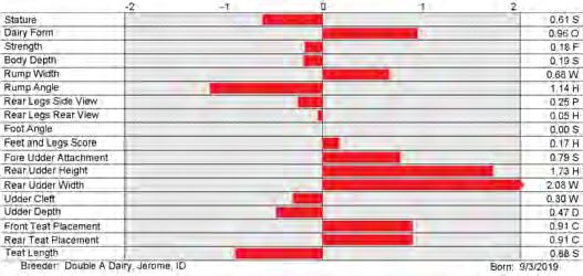 6. Type (PTAT), UDC (Udder Comp.), FLC (Feet & Legs Comp.), BWC (Body Weight Comp.), D (Dairy Capacity Comp.), The higher number is better for all traits.