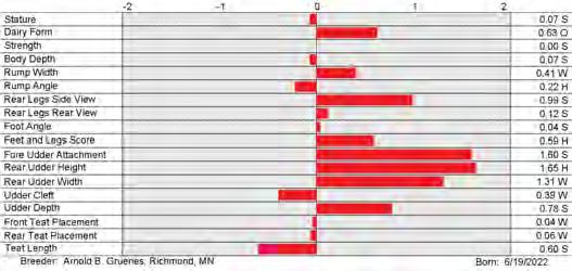 9. Mastitis (MAS) resistance indicates how resistant a bull’s daughters are to mastitis. Higher values are preferred. Evaluations are expressed in percentage points of resistance different from breed average.