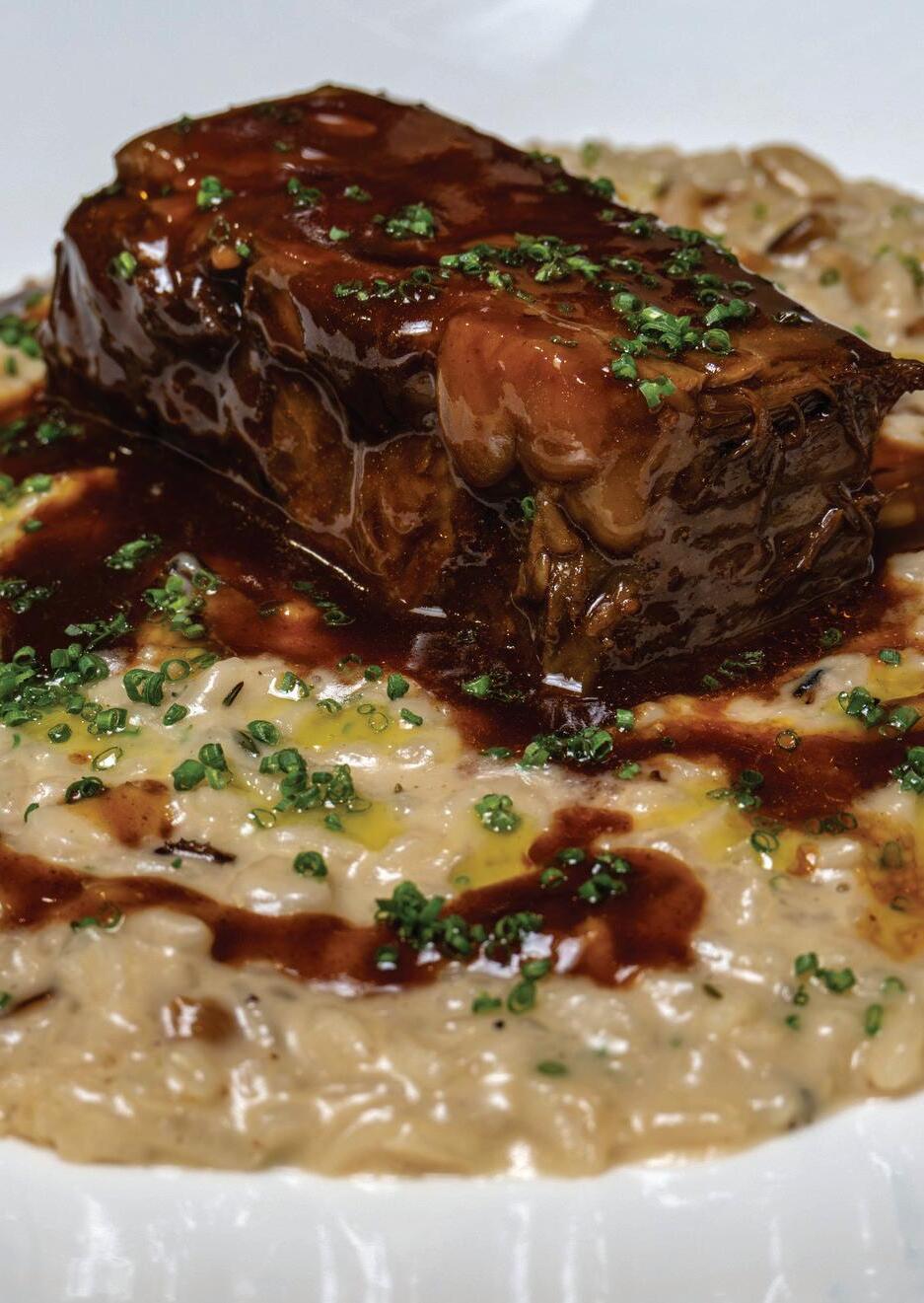 Stout & Miso–Braised Beef Short Ribs with Celeriac Risotto and Charred Leeks